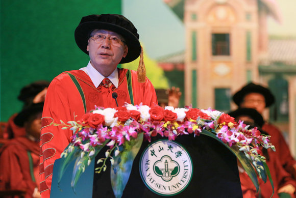 今年,我們有超過(guò)55%的本科生選擇繼續(xù)深造,“學(xué)在中大,追求卓越”的校風(fēng)學(xué)風(fēng)逐漸濃厚起來(lái)。我很高興看到,被喻為“追風(fēng)少年”的大氣科學(xué)學(xué)院周明顥同學(xué)、立志投身祖國(guó)海洋工程事業(yè)的海洋科學(xué)學(xué)院林振鎮(zhèn)同學(xué)、積極參加國(guó)家重大研究項(xiàng)目的嶺南學(xué)院王瀚洋同學(xué)等,一批學(xué)子在學(xué)習(xí)過(guò)程中充分感受學(xué)術(shù)魅力、享受學(xué)術(shù)樂(lè)趣,并展現(xiàn)出勇于超越,爭(zhēng)當(dāng)一流的優(yōu)秀品質(zhì)。我也很高興看到,獲得全國(guó)年度人物的政治與公共事務(wù)管理學(xué)院卜熙同學(xué)、積極從事公益活動(dòng)的國(guó)際翻譯學(xué)院林莎莎同學(xué)、以及將赴西藏、云南支教的第19屆研究生支教團(tuán)17名畢業(yè)生,一批學(xué)子關(guān)心社會(huì)、樂(lè)于奉獻(xiàn)、敢于擔(dān)當(dāng),體現(xiàn)出中大學(xué)子濃濃的家國(guó)情懷。我校今年投身國(guó)家西部發(fā)展事業(yè)的畢業(yè)生有300余人,母校為此而驕傲,讓我們一起為他們鼓掌!