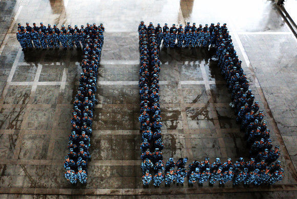 八年抗戰艱苦卓絕,歷史因銘記而永恒,正義因捍衛而彰顯。作為新一代青年人,環境科學與工程學院2015級全體新生著軍裝、戴軍帽,用站隊造型為70周年增光添彩,以銘記這一刻。掛著軍訓的汗水,在教學樓前,在訓練場上,他們手捧閃爍的燭光,用挺拔的身姿,表達了對祖國的堅守與責任。