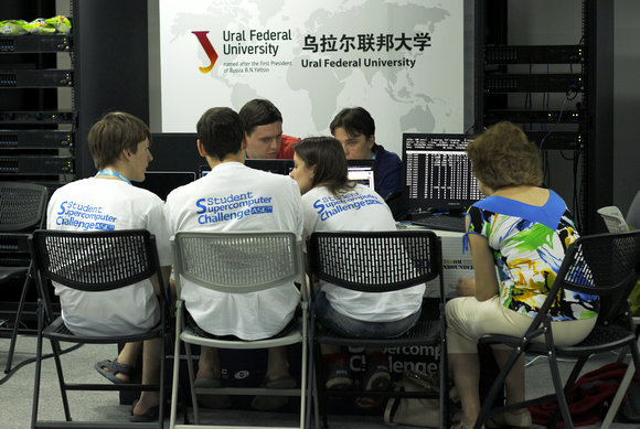 烏拉爾聯邦大學也是首次參賽,隊伍由五位計算機科學系的學生組成。帶隊老師表示,由于學校沒有超級計算機配備的Xeon Phi芯片,這支隊伍今年2月才正式確定成員,3月隊員首次在莫斯科大學操作超級計算機。隊員們特意提早來到廣州適應環境,全力以赴投入競賽。在決賽的集群搭建和調試階段,雖然隊員們耗費較長時間來熟悉官方提供的硬件,也遇到了網絡故障等問題,但整體氣氛是輕松的。隊員瑪林娜表示,他們是抱著向其他學校學習的態度來參賽的,并借此機會來觀摩平時難以接觸到的高端超算設備。