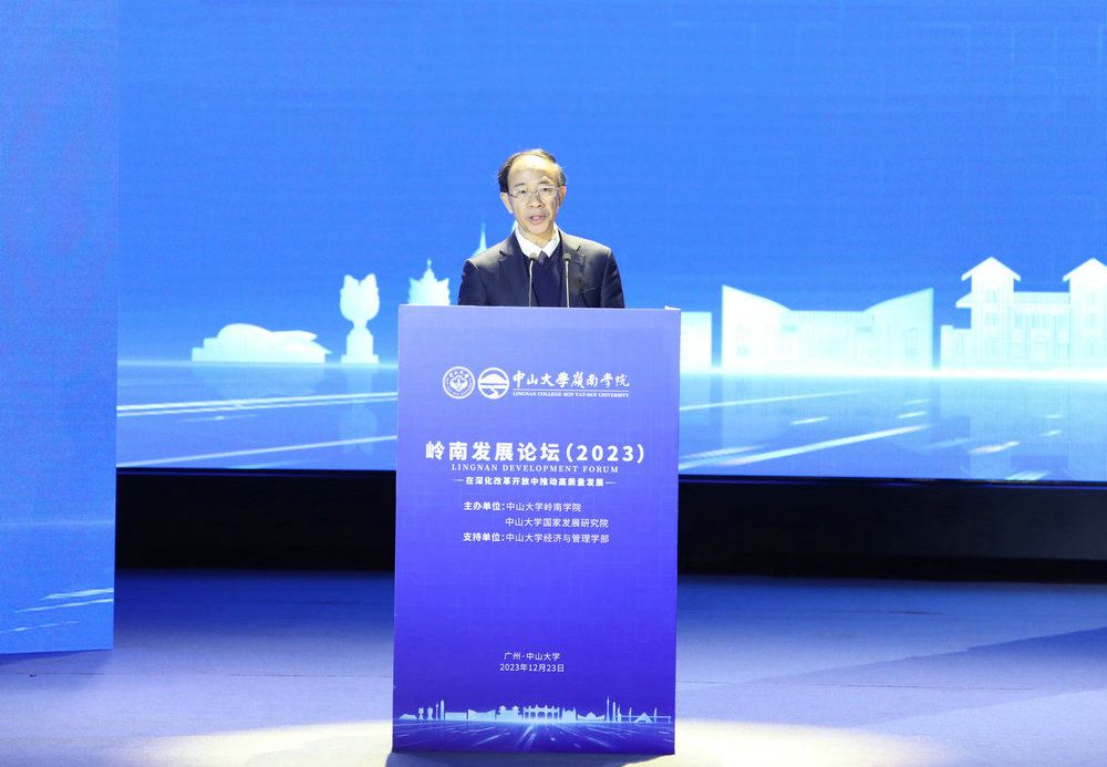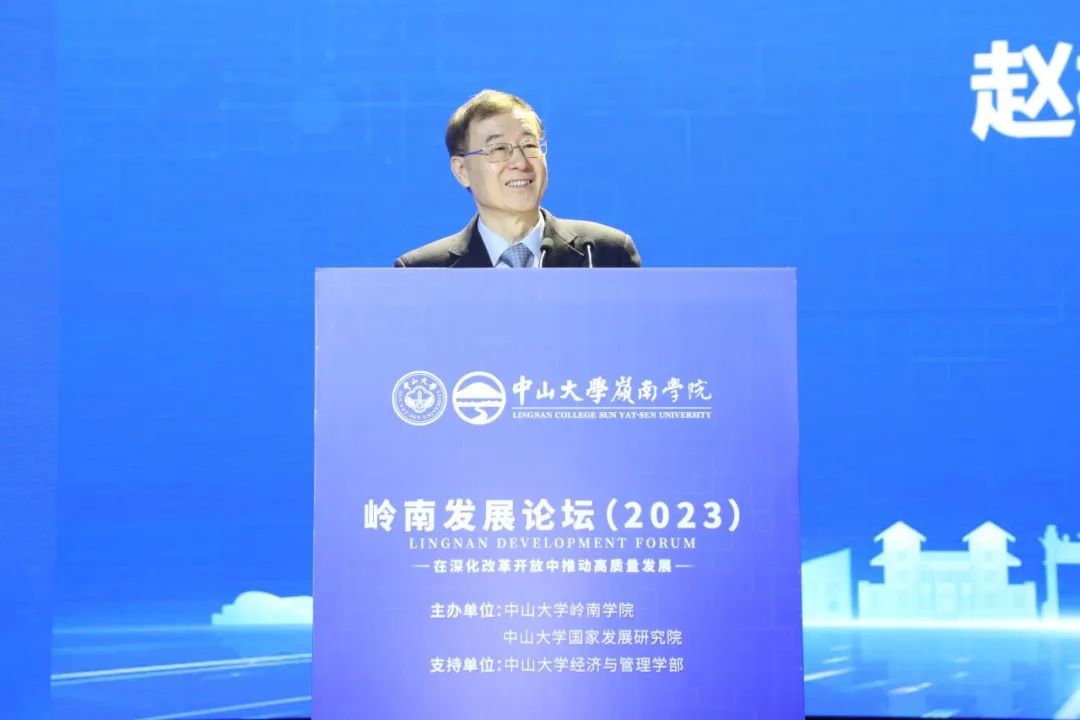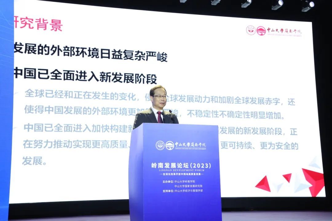 在嶺南發展論壇的第三個環節,中山大學國家發展研究院重磅發布《嶺南發展報告(2023)》。中山大學國家發展研究院院長趙昌文教授介紹了報告的寫作背景和主要內容。當前世界百年大變局加速演變,外部環境的不穩定性不確定性明顯增強,中國已全面進入加快構建新發展格局、推動高質量發展的新階段,中山大學國家發展研究院撰寫《嶺南發展報告(2023)》,希望展示嶺南學人對國內國際形勢的綜合研判和對策建議。