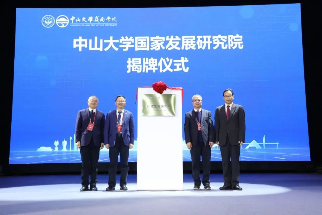 中山大學校長高松院士,常務副校長楊清華,經濟與管理學部主任、嶺南學院院長李善民,國家發展研究院院長趙昌文共同揭牌。