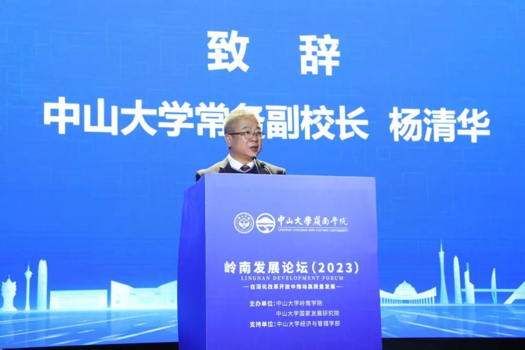 李善民教授首先對出席本屆論壇的嘉賓、專家學者和師生校友表示熱烈歡迎。李善民表示,今年是全面貫徹黨的二十大精神的開局之年,也是改革開放45周年和黨的十八屆三中全會召開10周年,為積極推進基于中國式現代化實踐的發展理論與政策研究,更好地服務國家和地方經濟社會發展,在此召開首屆嶺南發展論壇,共同探討在深化改革開放中推動高質量發展,意義重大。各位專家學者和參會代表分享真知灼見,必將產生有益的成果。