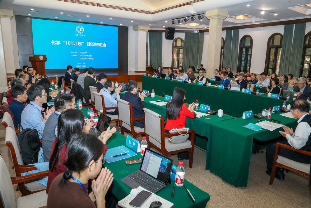 中大新聞網訊(通訊員韋卓勛)1月6日上午,化學“101計劃”建設推進會在中山大學廣州校區南校園懷士堂召開。專家組指導專家高松院士、鄭蘭蓀院士、田中群院士、張希院士、周其林院士、譚蔚泓院士、彭笑剛教授,各核心課程負責人及課程組核心成員,30所化學拔尖學生培養計劃2.0基地獲批高校的相關院系領導代表,出版社等相關代表等通過線上線下形式參加會議。中山大學教務部教學發展處處長黃林沖主持第一環節會議。