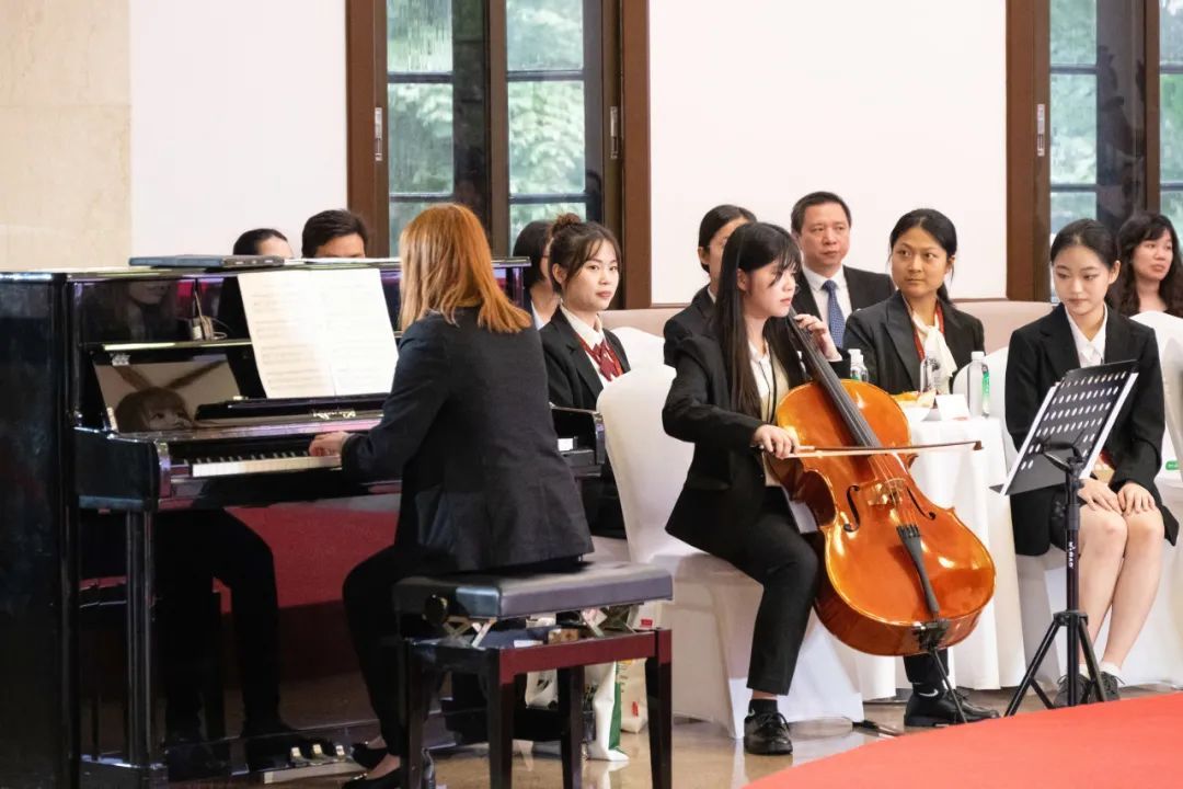 以樂會友,以歌傳情。中山大學學生民樂團演奏了廣東傳統樂曲《花好月圓》和《步步高》,寶島同學們帶來了鋼琴、大提琴演奏《巴赫小步舞曲》,中大學生還表演了古典雙人舞《書簡》……精彩的演出讓現場氣氛洋溢著濃濃的青春氣息。