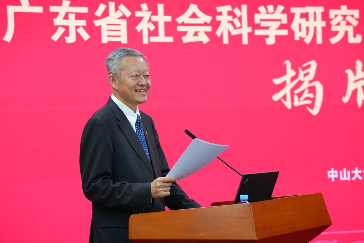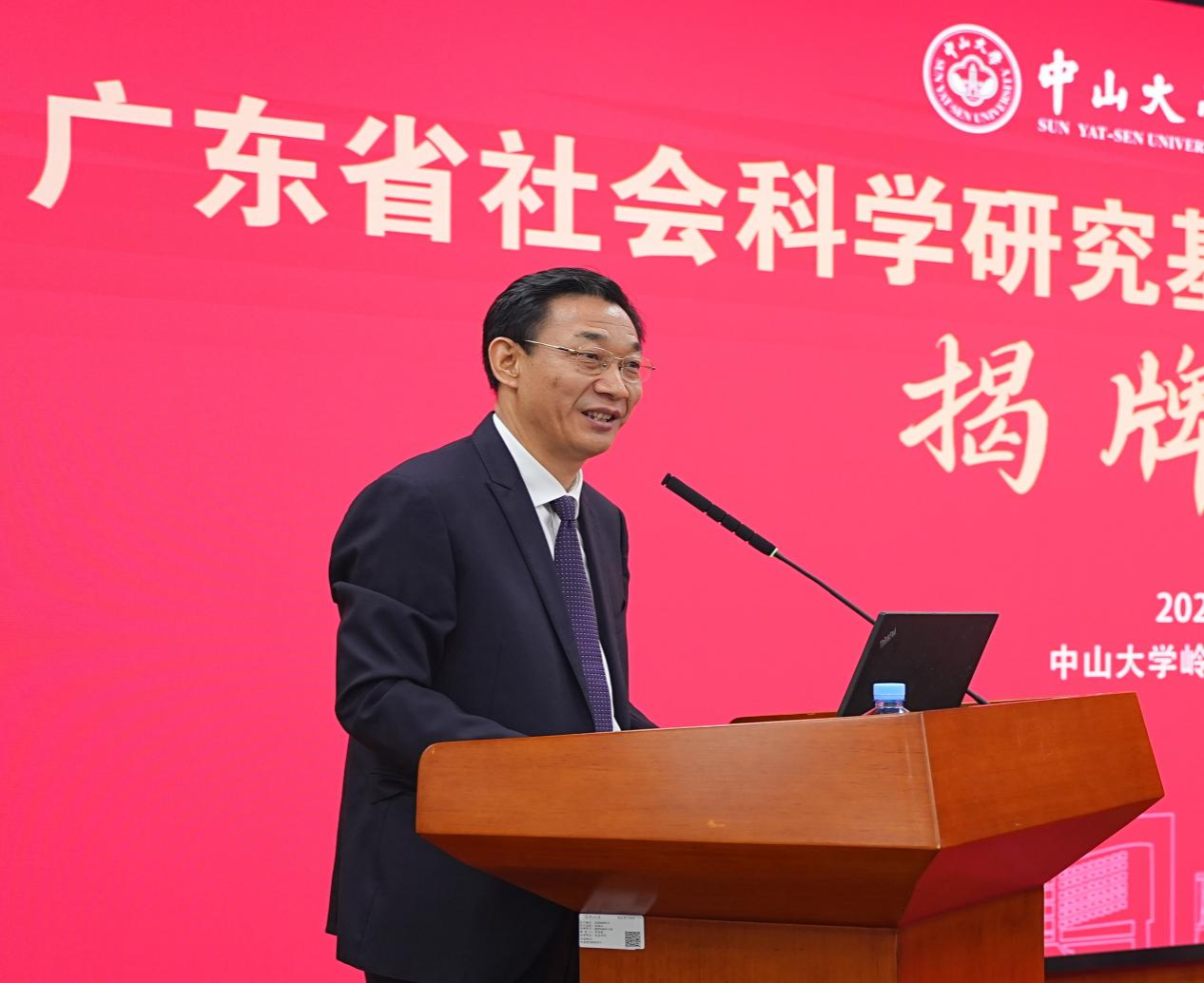陳春聲書記在致辭中對省社科聯長期以來給予中山大學高度的信任和大力的支持表示衷心感謝。他指出,中山大學文科的學科門類齊全,擁有深厚的學科積淀、綿長的學脈傳承、豐碩的研究成果、強勁的創新能力和廣泛的社會影響。獲批的兩個基地都是具有鮮明研究特色和扎實研究基礎的高水平科研平臺。陳春聲書記表示,中國式現代化的偉大實踐為當下哲學社會科學的發展提供了現實藍本,立德樹人、培根鑄魂是高校哲學社會科學的根本任務,關乎中國共產黨長期執政和中華民族千秋偉業,是提升國家綜合國力和國際競爭力、建設社會主義現代化強國、構建人類命運共同體的重要戰略支撐。他希望孫中山研究中心與國家發展研究院等社科研究基地傳承好中山大學哲學社會科學的優良學術傳統,進一步發揮學校地處粵港澳大灣區這一辦學區位優勢,聚焦學術前沿,服務灣區,輻射全國,面向世界,進一步突出問題導向,凝練主攻方向,開展前瞻性的學術理論與應用對策研究,把研究做在祖國大地上,努力產出更多高質量的研究成果,主動當好“思想庫”與“智囊團”,為廣東在推進中國式現代化建設中走在前列貢獻中大智慧。