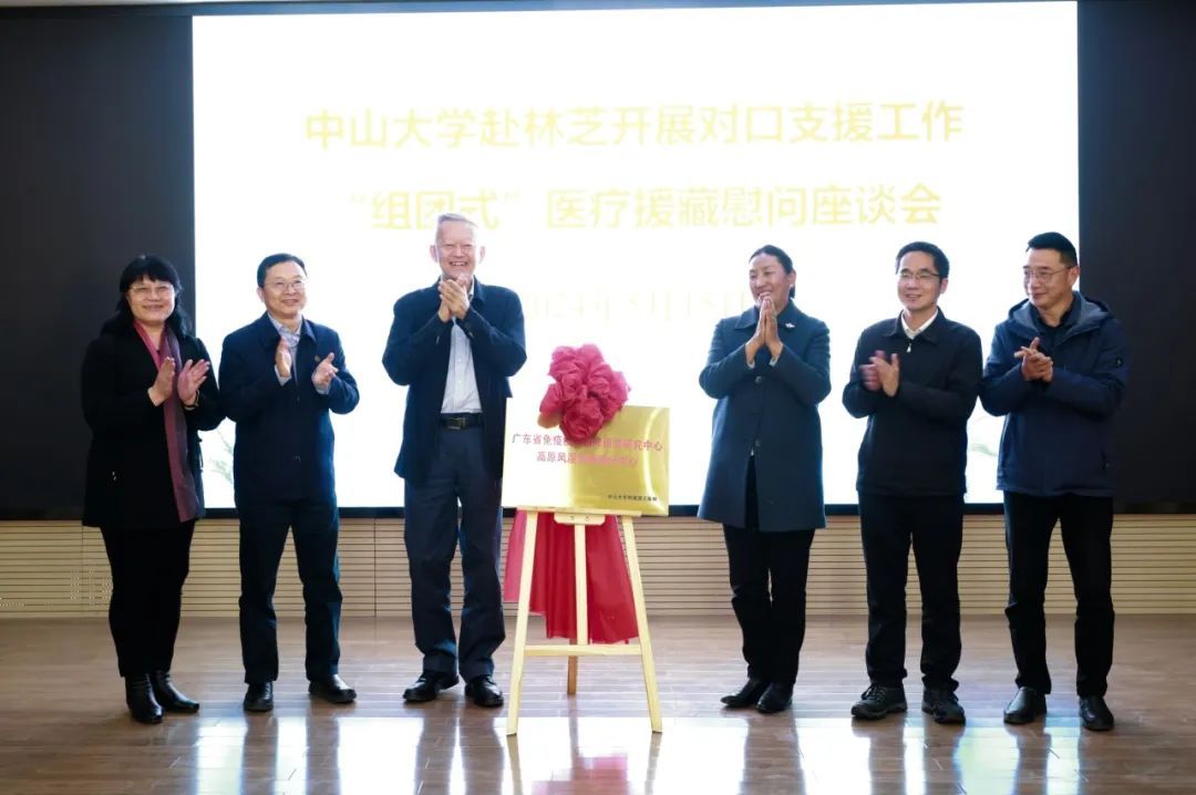 陳春聲書記、高松校長還共同為“廣東省免疫疾病臨床醫學研究中心高原風濕免疫病分中心”揭牌。該中心將依托中山大學附屬第三醫院的技術優勢、人才優勢開展研究,全力提升林芝市人民醫院高原風濕免疫疾病診療水平,更好為林芝群眾服務。