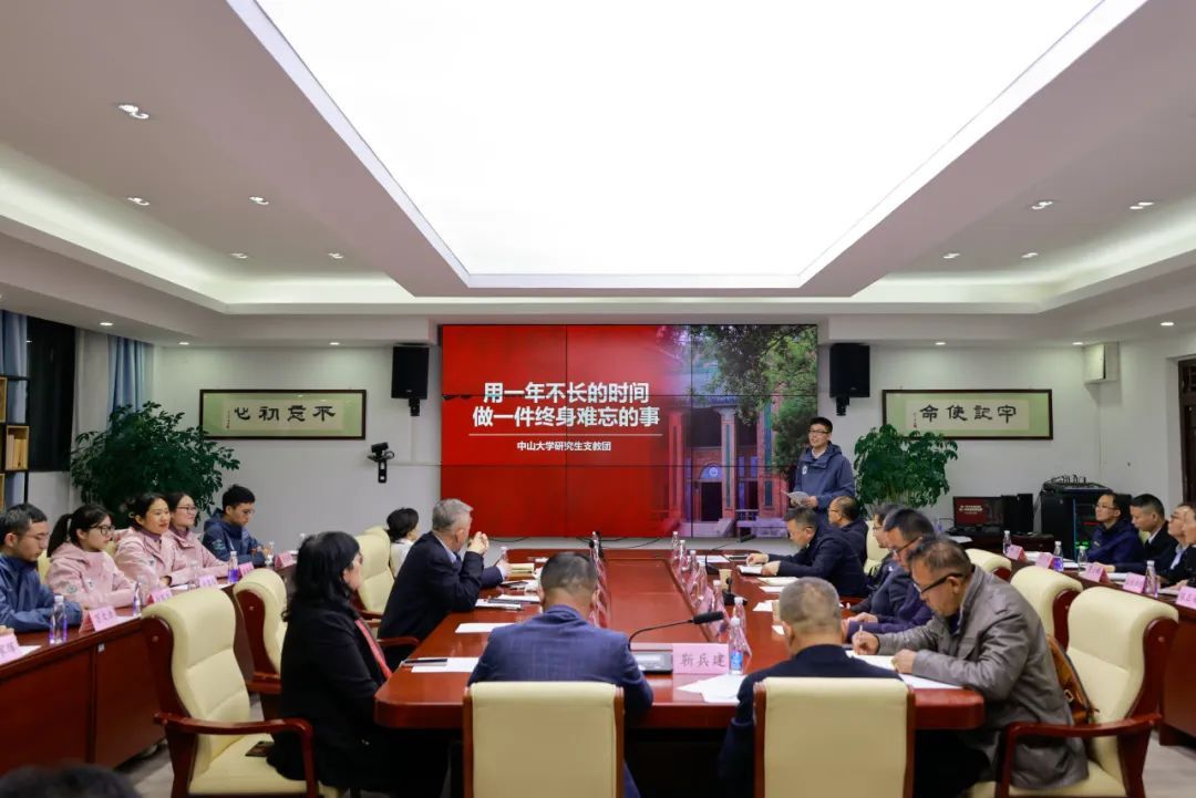 中山大學第25屆研究生支教團巴宜分隊隊長陳子河做支教團工作匯報,介紹了支教團基本情況與工作成果。隊員們表示,將牢記母校教誨、不忘支教初心,用青春弘揚志愿精神,用奉獻書寫新時代的壯麗篇章,圓滿完成支教任務,獻禮母校百年華誕。