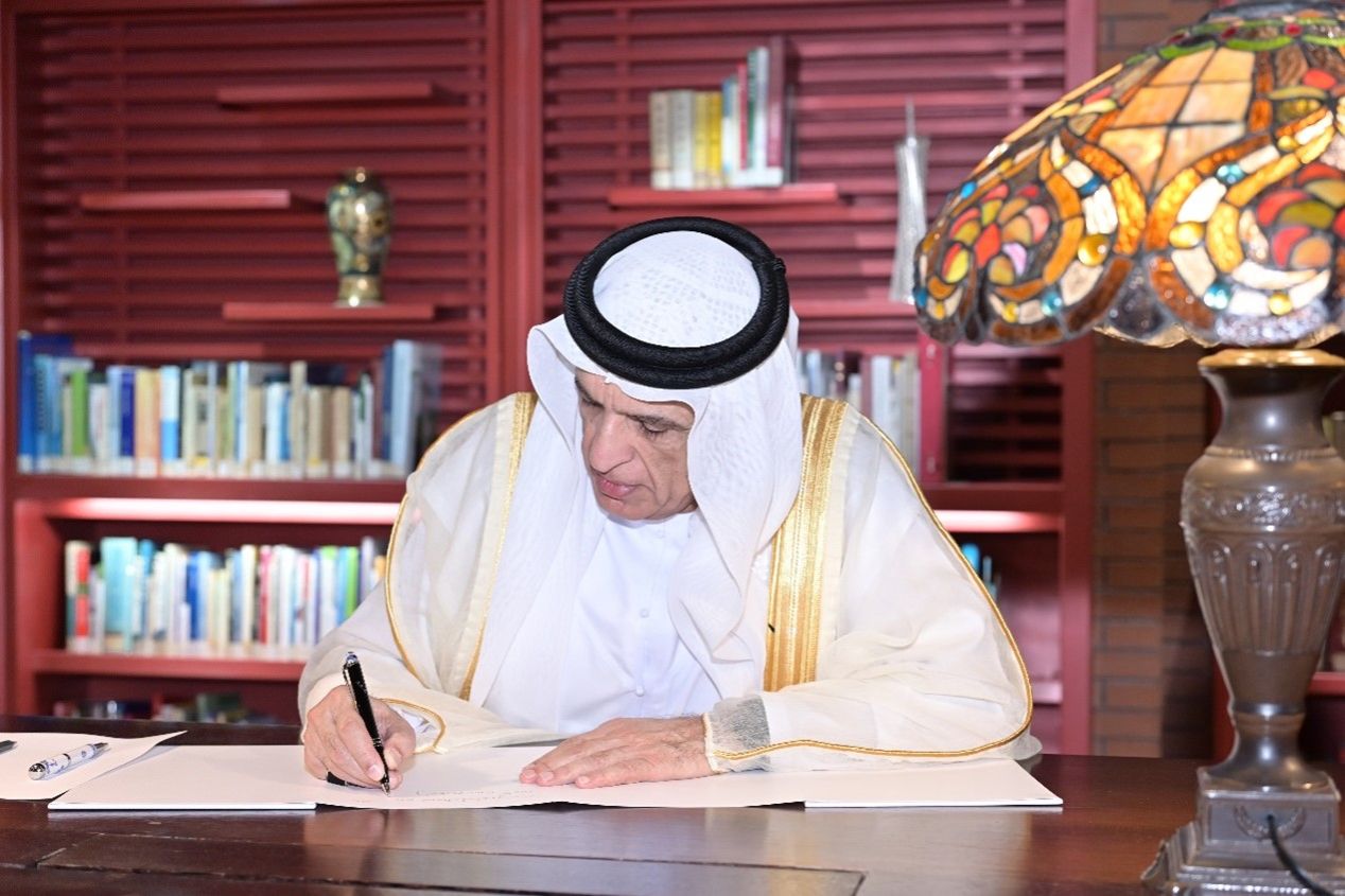 卡希米酋長感謝學校熱情接待,對于中山大學的校園環境和發展成就印象深刻。卡希米酋長表示,中山大學作為中國一流高等學府之一,其在學術研究、人才培養以及文化交流方面取得的成就令人矚目,他期待未來能與中山大學在醫學教育、博物館管理、藝術文化教育等領域開展合作。會談后卡希米酋長親筆題詞,表達對中山大學建校百年的祝賀和對雙方合作的美好愿望。