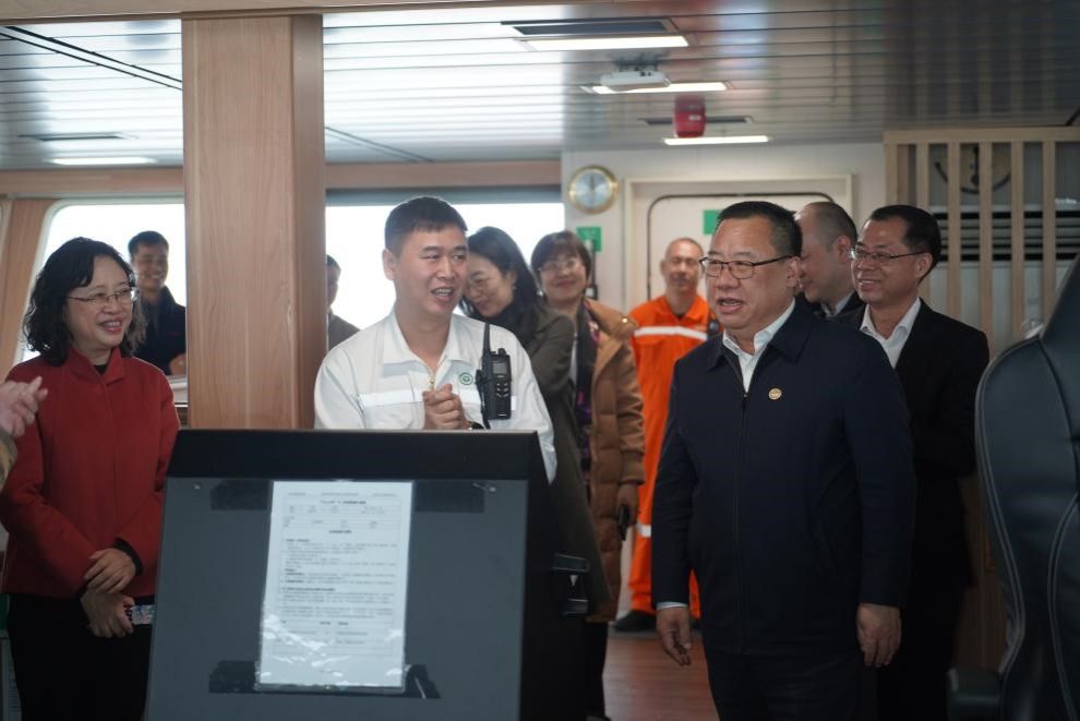 朱孔軍書記等領導專家登船慰問全體船員,與船員們親切交談,了解工作生活近況,感謝他們為學校海洋科考事業奮戰在第一線,并鼓勵全體船員繼續發揚艱苦奮斗、勇于探索的精神,爭取更大的發展突破。