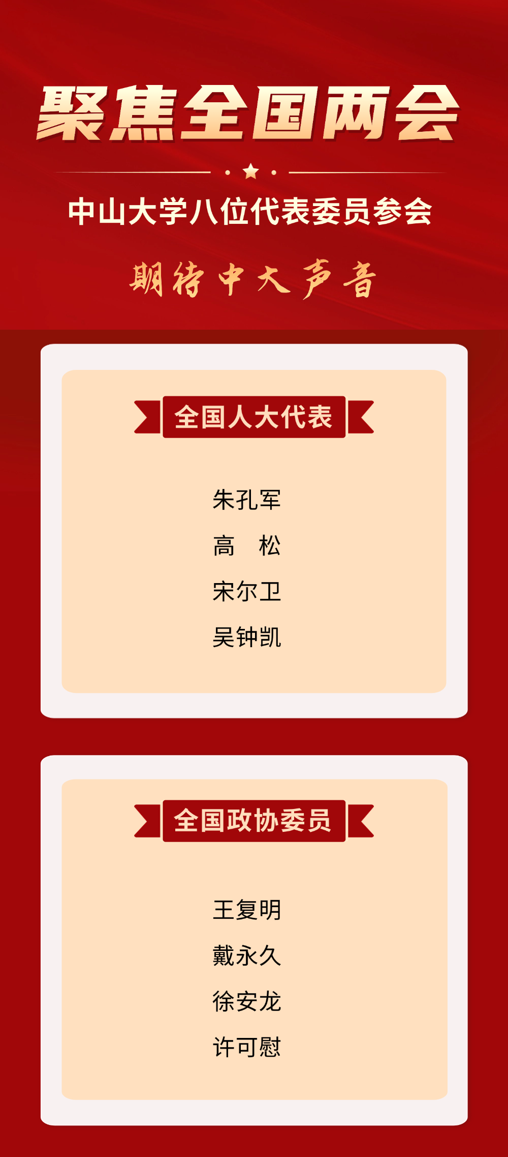 中大新聞網訊(通訊員蔣靜、何婉文、李穎)3月4日至5日,全國政協十四屆三次會議、十四屆全國人大三次會議相繼在北京開幕。今年,中山大學共有4位全國人大代表和4位全國政協委員赴京履職,他們在兩會期間盡職盡責、建言獻策,貢獻中大智慧和力量。