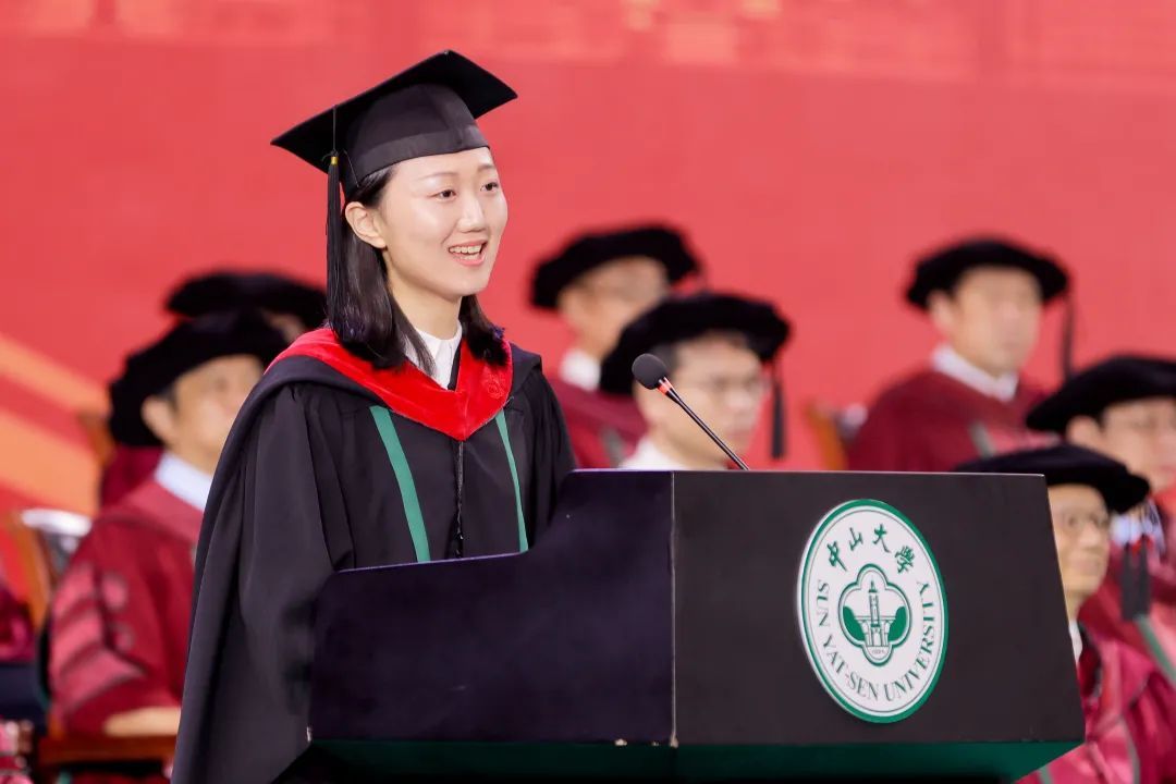 今年是黨的二十大勝利召開之年,我們正處于一個偉大的時代,作為新時代的中國青年,我們肩負實現中華民族偉大復興的歷史重任,要把人生理想追求融入到國家前途、民族命運與時代理想之中,砥礪前行、自我超越,讓青春奮斗的腳步和新時代的車輪同向并進,用一生來踐行聽黨話、跟黨走的理想追求。今天是我們中大學習生活的結束,同時也是我們下一段新征程的開始,雄關漫道真如鐵,而今邁步從頭越。我們或選擇升學深造,或選擇走上理想的工作崗位,但無論走向哪里,我們都是中大人,會始終以“博學、審問、深思、明辨、篤行”要求自己,努力成長為堪當民族復興重任的時代新人,修齊治平,奮斗不息,不負中大的栽培,不負祖國殷切的期盼。