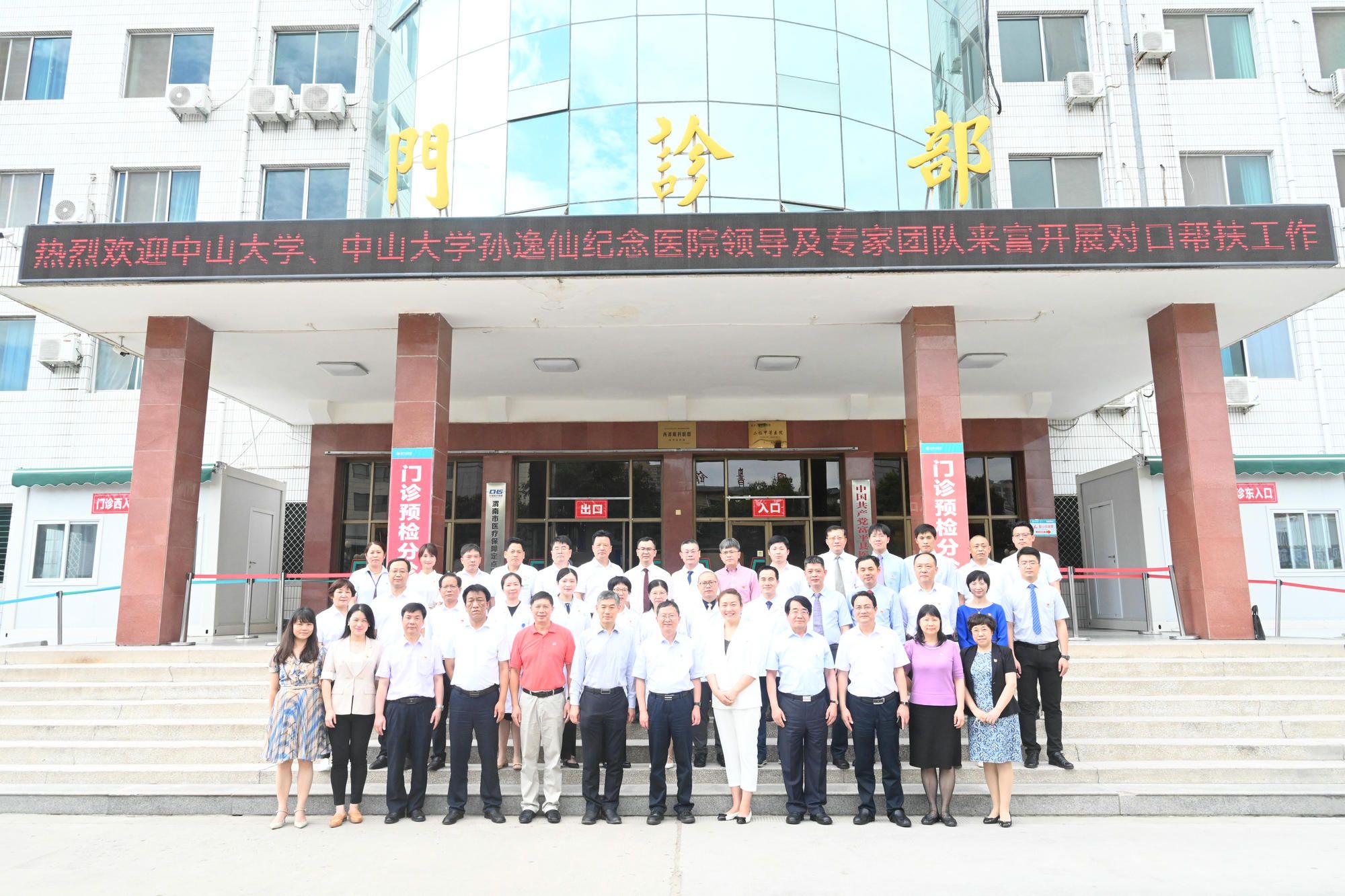 中大新聞網(wǎng)廣州7月5日電(通訊員林偉吟)為喜迎二十大,扎實(shí)推進(jìn)“健康中國(guó)”建設(shè),7月1-3日,在慶祝中國(guó)共產(chǎn)黨成立101周年之際,在中山大學(xué)校長(zhǎng)高松院士帶領(lǐng)下,中國(guó)科學(xué)院院士黃維,孫逸仙紀(jì)念醫(yī)院院長(zhǎng)宋爾衛(wèi)院士、黨委書(shū)記古小紅等一行28人赴陜西省富平縣醫(yī)院調(diào)研考察。渭南市委常委、富平縣委書(shū)記趙林斌,縣委副書(shū)記、縣長(zhǎng)景軍榮,第十三屆全國(guó)人大代表、中國(guó)移動(dòng)通信集團(tuán)廣東有限公司黨委書(shū)記、總經(jīng)理魏明,中國(guó)移動(dòng)通信集團(tuán)陜西有限公司黨委書(shū)記、總經(jīng)理陳懷達(dá),中山大學(xué)校長(zhǎng)辦公室主任楊建林等參加活動(dòng),并就新一輪醫(yī)療幫扶進(jìn)行工作交流。