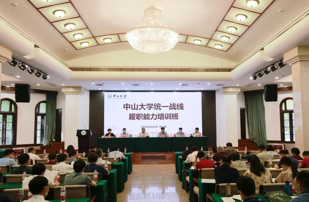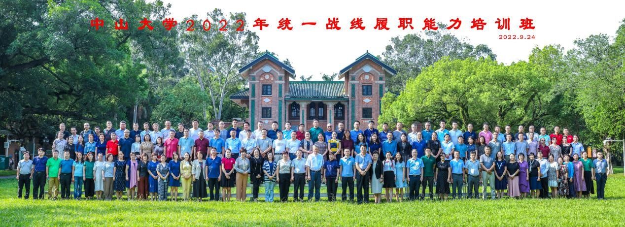 中大新聞網廣州9月27日電(通訊員何婉文)為深入開展“喜迎二十大 同心跟黨走”主題教育,引導我校統一戰線成員不斷增進對中國共產黨和中國特色社會主義的政治認同、思想認同、理論認同、情感認同,以實際行動做好中國共產黨的好參謀、好幫手、好同事。9月24日上午,中山大學2022年統一戰線履職能力培訓班開班儀式暨學習貫徹中央統戰工作會議精神專題輔導報告會在廣州校區南校園懷士堂舉行。學校各民主黨派省直基層組織、統戰團體全體班子成員、學校統戰工作領導小組成員單位負責人、各二級黨組織書記和統戰委員共200人參加。開班儀式由黨委統戰部常務副部長呂雅璐主持,學校黨委書記陳春聲,省知聯會副會長、我校副校長邰忠智,廣東省委統戰部黨派處處長姜員平,省委教育工委組織處調研員彭達,學校黨委組織部部長楊曉萌等出席了開班儀式。