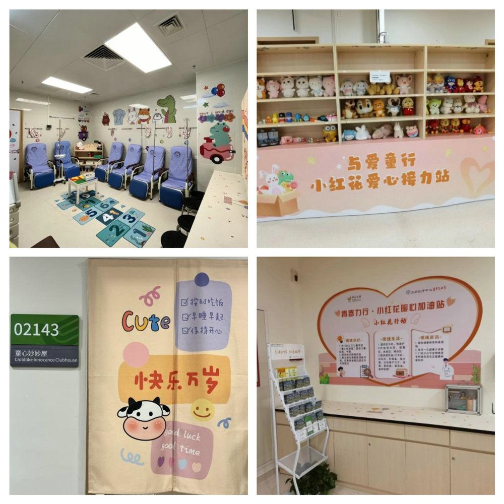 小天使們有時因為害怕治療環境和注射時間過長不太配合治療,為了讓腫瘤患兒感受有溫度的日間治療,黃埔院區日間化療中心打造了“童心妙妙屋”,里面配備了兒童輸液室、輪椅停靠站、愛心接力站及暖心加油站等多項便民暖心服務。