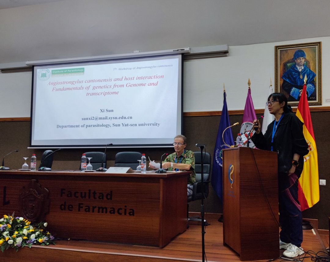 孫希副教授在會上作了題為“Angiostrongylus cantonensis and host interaction Fundamentals of genetics from Genome and transcriptome”的學術報告,全?介紹了中?醫學院在?州管圓線?與管圓線?病的研究歷史,重點展示了?州管圓線??州株全基因組以及寄??與宿主互作關系的研究進展,展現了中國在該領域的學術實?和國際影響?,獲得了參會專家的?度稱贊和認可。代表們希望中?醫學院能在 2033 年舉辦陳?陶教授發現?州管圓線? 100 周年紀念活動。
