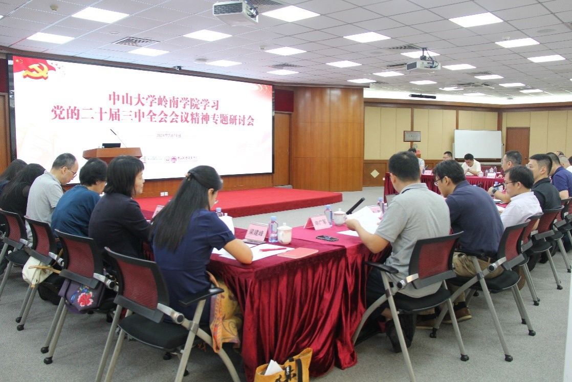 中大新聞網訊(通訊員劉玲琳,攝影陳菊紅)7月15日至18日,中國共產黨第二十屆中央委員會第三次全體會議在北京召開。為深入學習貫徹黨的二十屆三中全會精神,近日,嶺南學院組織召開黨的二十屆三中全會精神專題研討會。學院黨委書記黃毅,副院長劉彥初、林建浩,院長助理柳建華,以及學院各教研室專任教師參加研討。會議由學院副院長魯曉東主持。