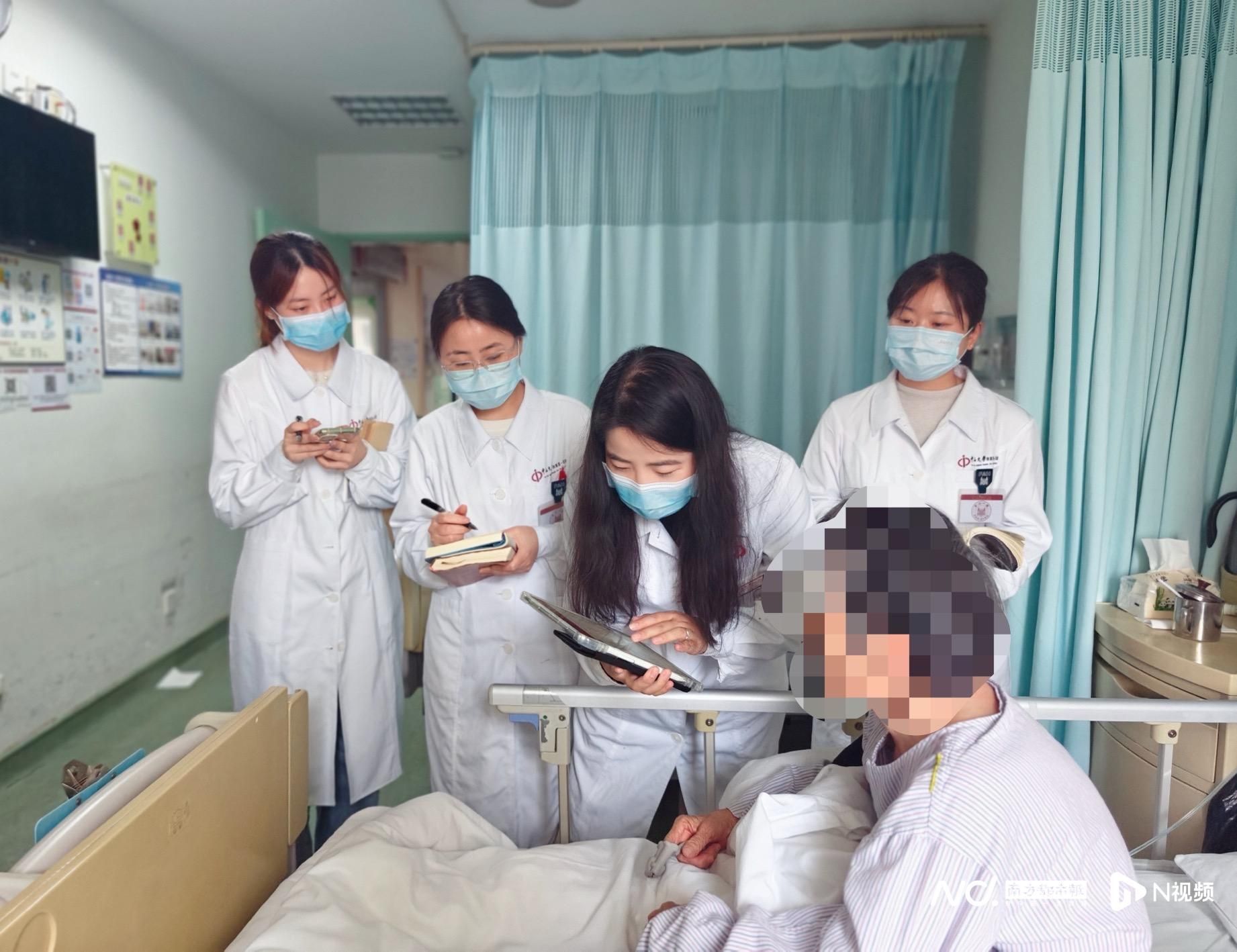 中山一院的駐科藥師在查房時,使用搭載“移動查房系統”的平板電腦。