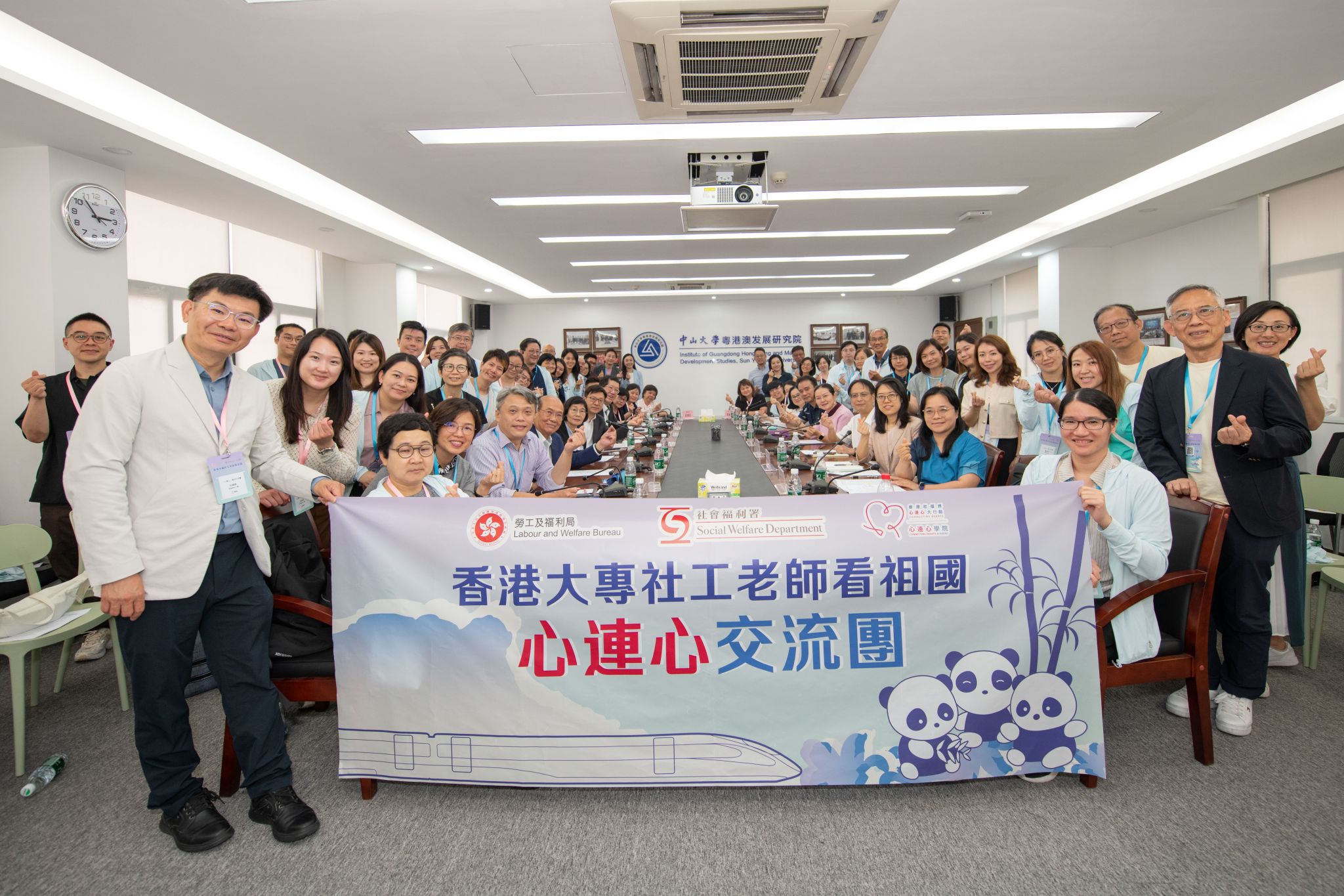 交流團成員香港福利署署長杜永恒、香港社工注冊局主席許宗盛、香港社福界心連心大行動副主席譚贛蘭,以及來自17所香港大專院校社會工作專業的老師,國際合作與交流處副處長余伯俊出席座談會。座談會由粵港澳發展研究院黨委書記、副院長袁旭陽主持。