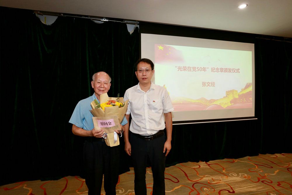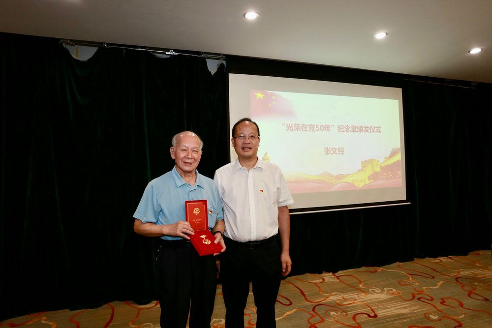 范瑞泉書記向張文經(jīng)副教授頒發(fā)“光榮在黨50年”紀(jì)念章(來源:公共衛(wèi)生學(xué)院)