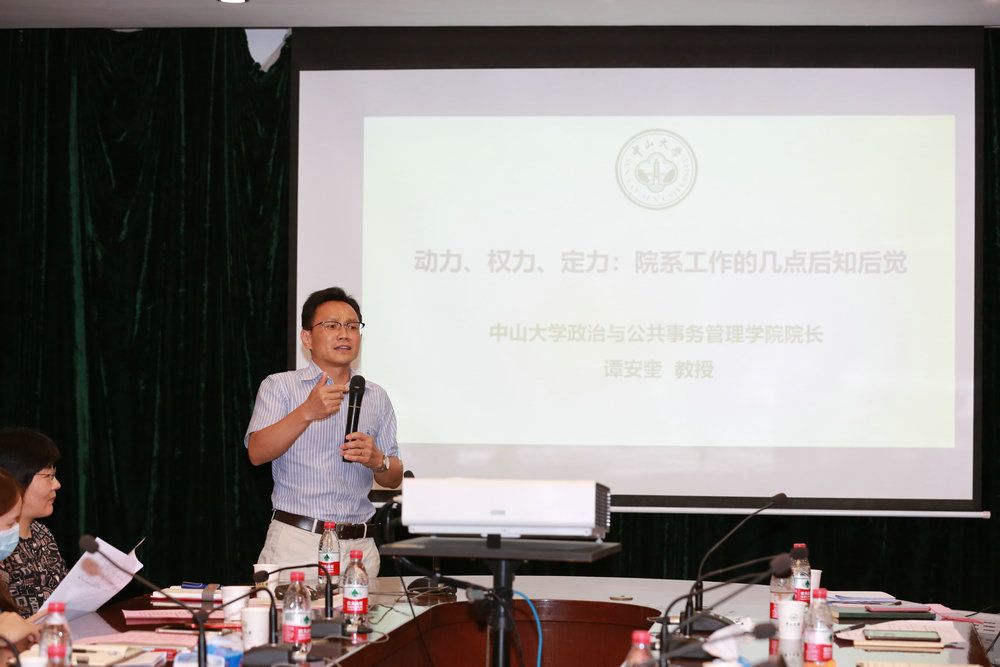 隨后,進(jìn)行了公共衛(wèi)生學(xué)院第二期中青年骨干讀書班的開班儀式,并邀請(qǐng)中山大學(xué)政治與公共事務(wù)管理學(xué)院院長譚安奎教授作了題為《動(dòng)力、權(quán)力、定力:院系工作的幾點(diǎn)后知后覺》的專題報(bào)告。譚院長圍繞“動(dòng)力、權(quán)力、定力”三個(gè)關(guān)鍵詞,提出做好院系工作要堅(jiān)持系統(tǒng)性思維,要堅(jiān)持長遠(yuǎn)思維心系未來發(fā)展,要注重溝通與協(xié)調(diào),要有擔(dān)當(dāng)和定力,要相互尊重相互成就,為青年骨干讀書班奉獻(xiàn)了一場(chǎng)充滿辯證法的精彩報(bào)告。