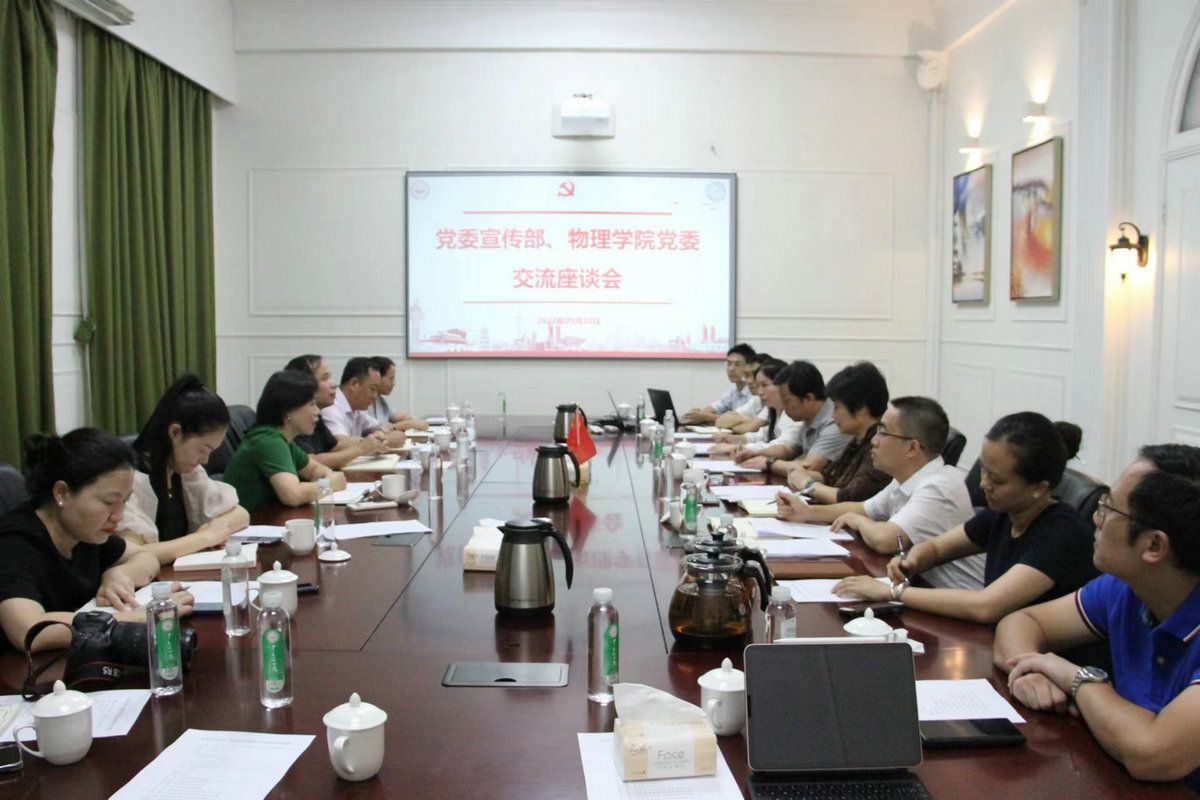 中大新聞網(wǎng)廣州9月26日電(記者滿意)為了更好地服務(wù)院系宣傳思想工作,進(jìn)一步提高學(xué)校宣傳思想工作質(zhì)量,9月22日,黨委宣傳部到物理學(xué)院開展工作調(diào)研。圍繞宣傳思想工作的重點、要點和難點,進(jìn)行了充分的交流和研討。雙方就學(xué)院歷史、學(xué)科優(yōu)勢、重大科研成果和平臺建設(shè)的宣傳推廣,進(jìn)行了現(xiàn)場策劃研討,并確立下一步工作機(jī)制。