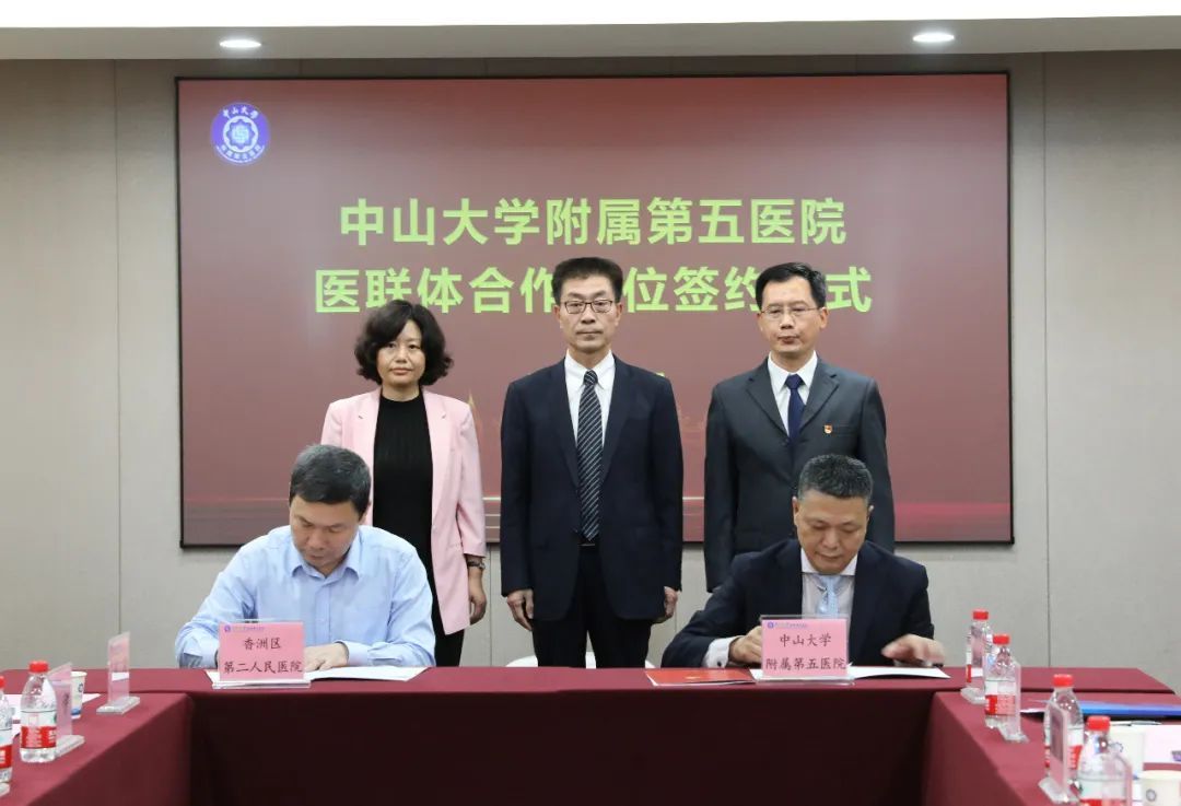 珠海市衛(wèi)生健康局局長徐超龍,香洲區(qū)衛(wèi)健局局長胡文鋒,金灣區(qū)衛(wèi)健局局長李翠英、副局長唐駿,附屬第五醫(yī)院院長單鴻,珠海市第三人民醫(yī)院院長黃明星,珠海市香洲區(qū)第二人民醫(yī)院院長吳興,廣東省人民醫(yī)院珠海醫(yī)院院長張忠林,珠海市第五人民醫(yī)院副院長李伊,珠海市金灣區(qū)三灶鎮(zhèn)衛(wèi)生院院長劉岡,合作醫(yī)院相關領導、科室負責人等參加了儀式。簽約儀式由附屬第五醫(yī)院副院長肖非主持。
