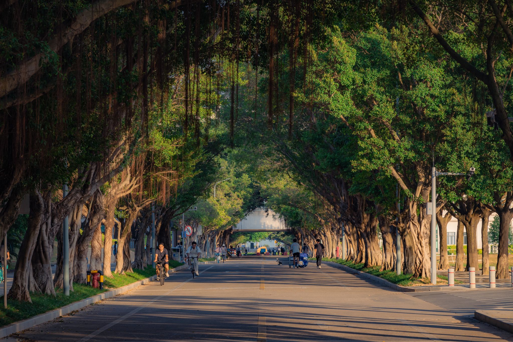 中山大學校園內,師生行走在古樹下。黃新宏攝