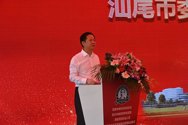 會議伊始,汕尾市委副書記、市長鄭海濤致辭。他表示,深汕中心醫院國家區域醫療中心揭牌、二期建設項目開工及革命老區乳腺病防治聯盟啟動,必將加快健康汕尾建設步伐,引領帶動全市衛生健康事業高質量發展。汕尾市委市政府將進一步加大國家區域醫療中心建設力度,推動二期項目加快建設,持續深化與深圳市、中山大學和孫逸仙紀念醫院在人才、技術和管理等方面合作,依托革命老區乳腺病防治聯盟,加快提升區域醫療整體水平,讓廣大群眾享受到更高水平的醫療服務,為汕尾創建革命老區高質量發展示范區貢獻健康力量。