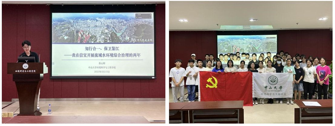 團(tuán)隊(duì)成員堅(jiān)持以習(xí)近平生態(tài)文明思想為指導(dǎo),與中山大學(xué)習(xí)近平生態(tài)文明思想學(xué)習(xí)宣講團(tuán)的師生一道加強(qiáng)理論學(xué)習(xí),并將先進(jìn)理念與信宜市流域水治理的生動(dòng)實(shí)踐有機(jī)融合,積極開展綠色低碳生態(tài)文明宣傳教育。5月15日晚,團(tuán)隊(duì)成員面向中山大學(xué)青年學(xué)子開展“節(jié)水宣傳周”宣講;5月18日,團(tuán)隊(duì)成員面向信宜市職業(yè)技術(shù)學(xué)校的學(xué)生開展習(xí)近平生態(tài)文明思想宣講。