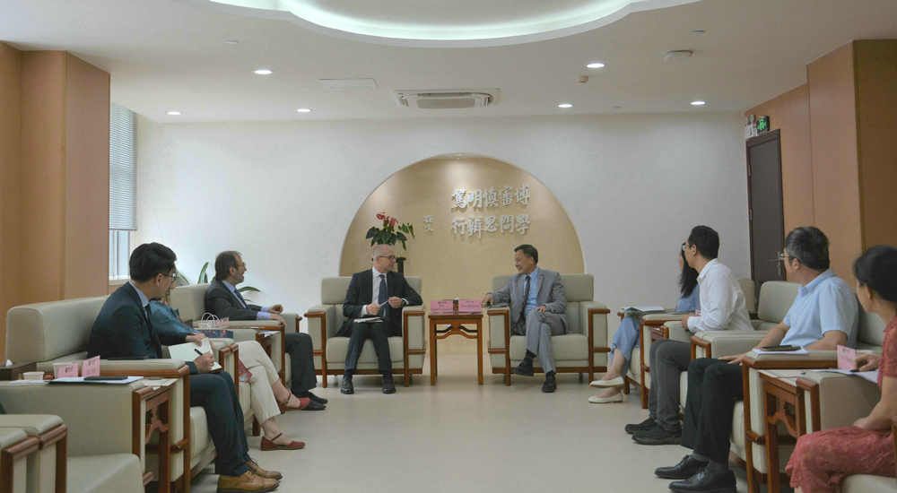 肖海鵬常務副校長對Pier Sandro Cocconcelli副校長一行來訪表示歡迎。他強調,中山大學重視與意大利高校的合作與交流。近年來,我校與意大利羅馬一大、都靈理工大學、帕多瓦大學、羅馬二大、那不勒斯費德里科二世大學、博科尼大學等意大利高校開展了合作與交流。合作領域主要在物理天文、臨床醫學、材料科學、工程學和經濟學。他表示,希望本次Pier Sandro Cocconcelli副校長一行的到訪可以進一步推動兩校在各個層次、各個領域的合作與交流。