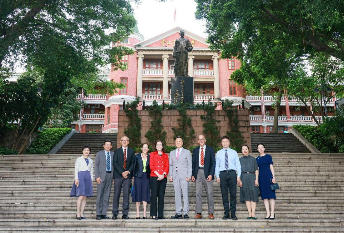 CMB代表團(tuán)與我校代表在中山銅像前合影