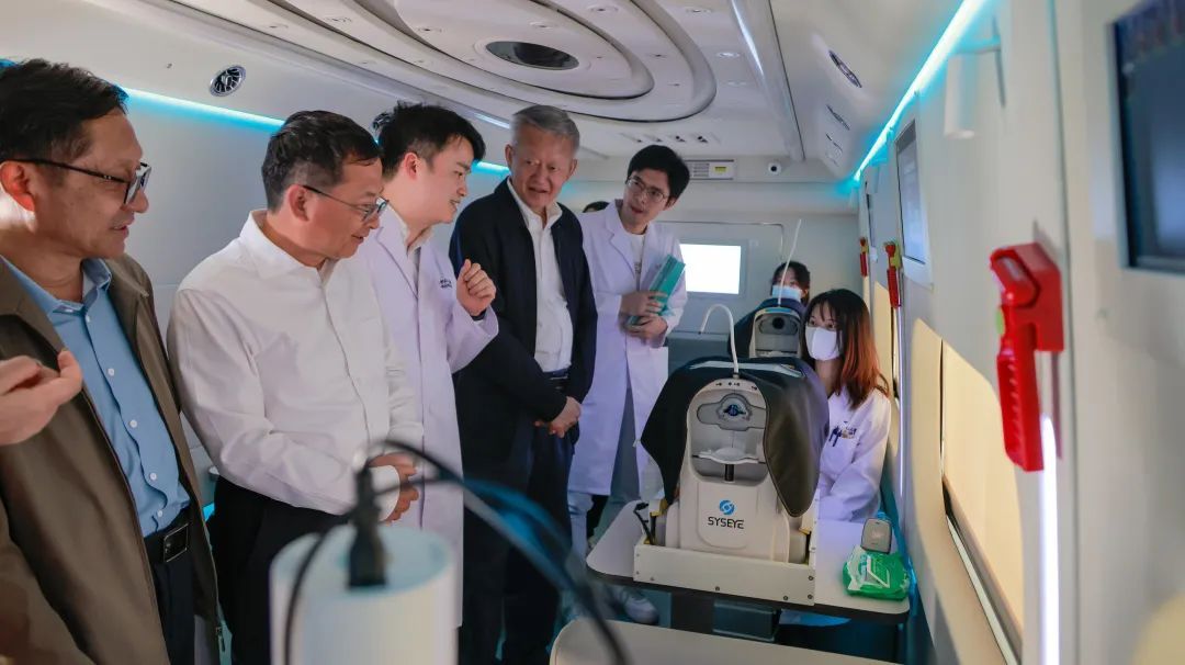 一輛早幾日從廣州開來的5G智能眼科巡診車正在當地開展白內障義診。中山眼科中心林浩添團隊的醫務人員在這里開展了眼科疾病篩查和白內障手術等。