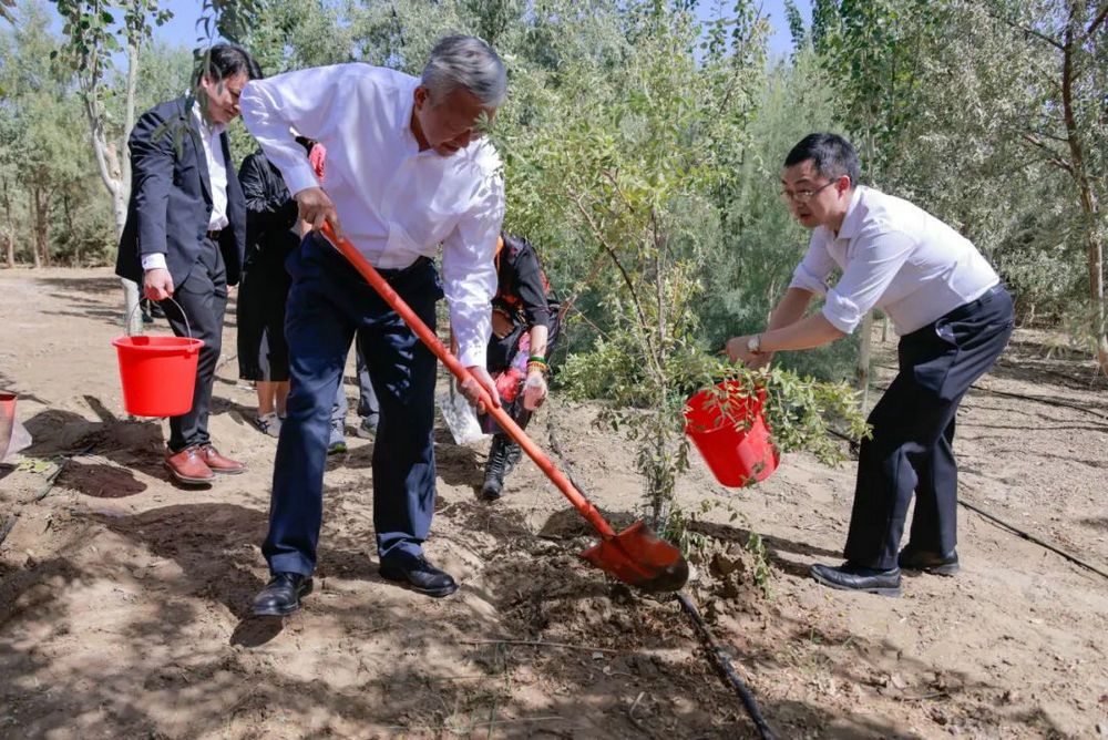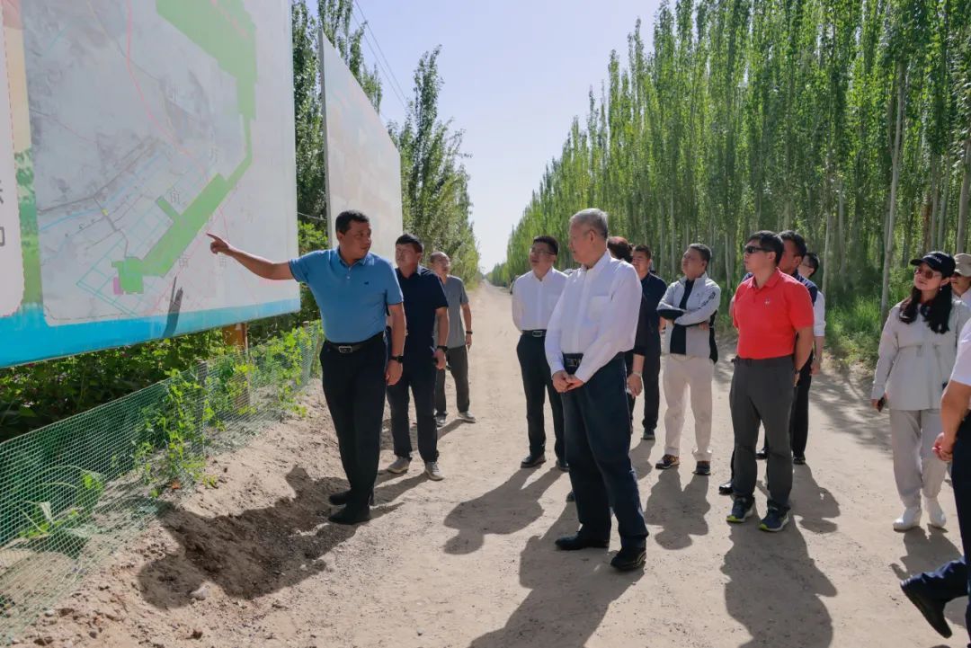 8月9日上午,陳春聲書記帶隊來到地處塔克拉瑪干沙漠西南邊緣的麥蓋提縣,調研當地的生態林建設情況,考察中大生態林。
