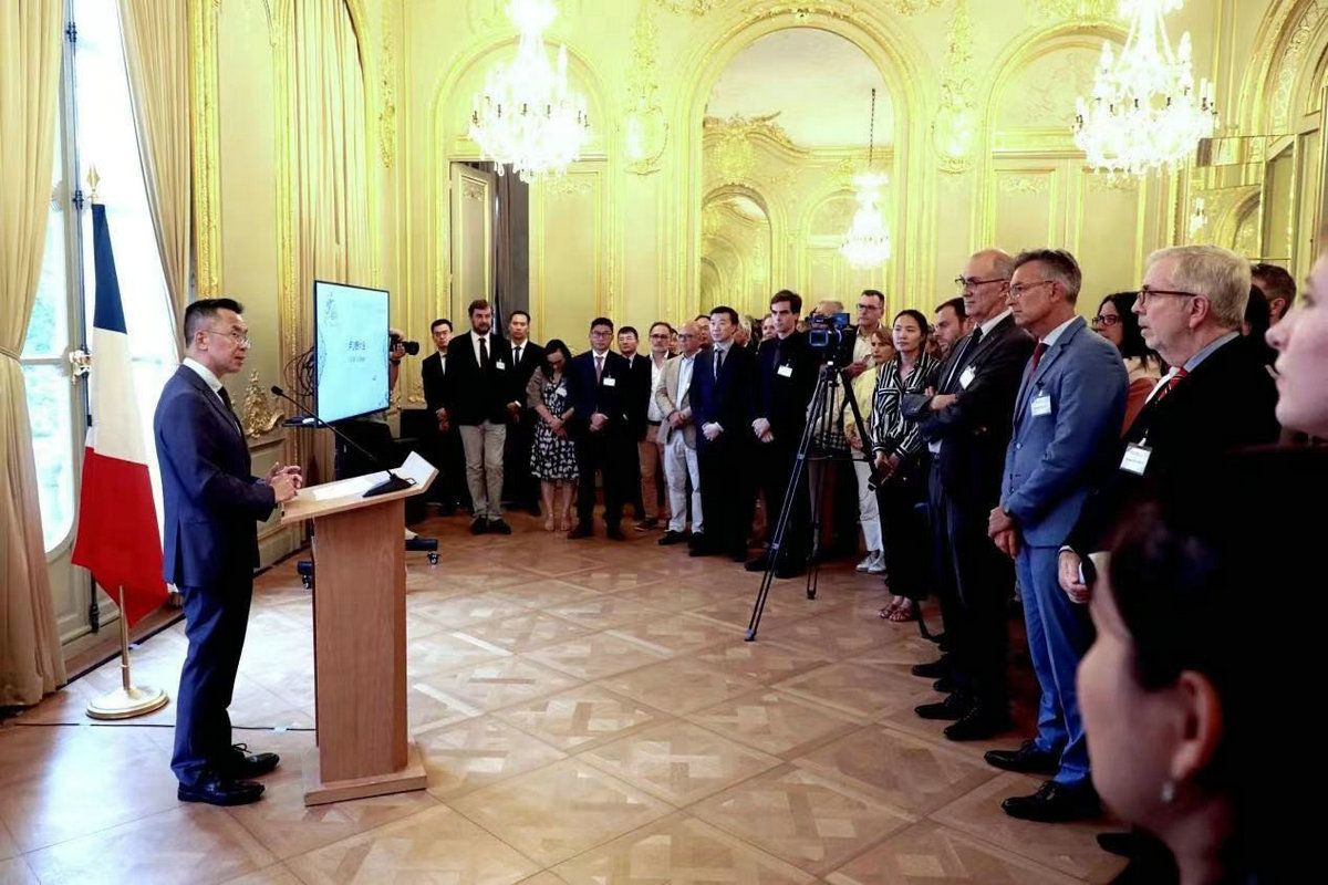盧沙野大使在招待會上致辭(圖片來源:中國駐法國使館)