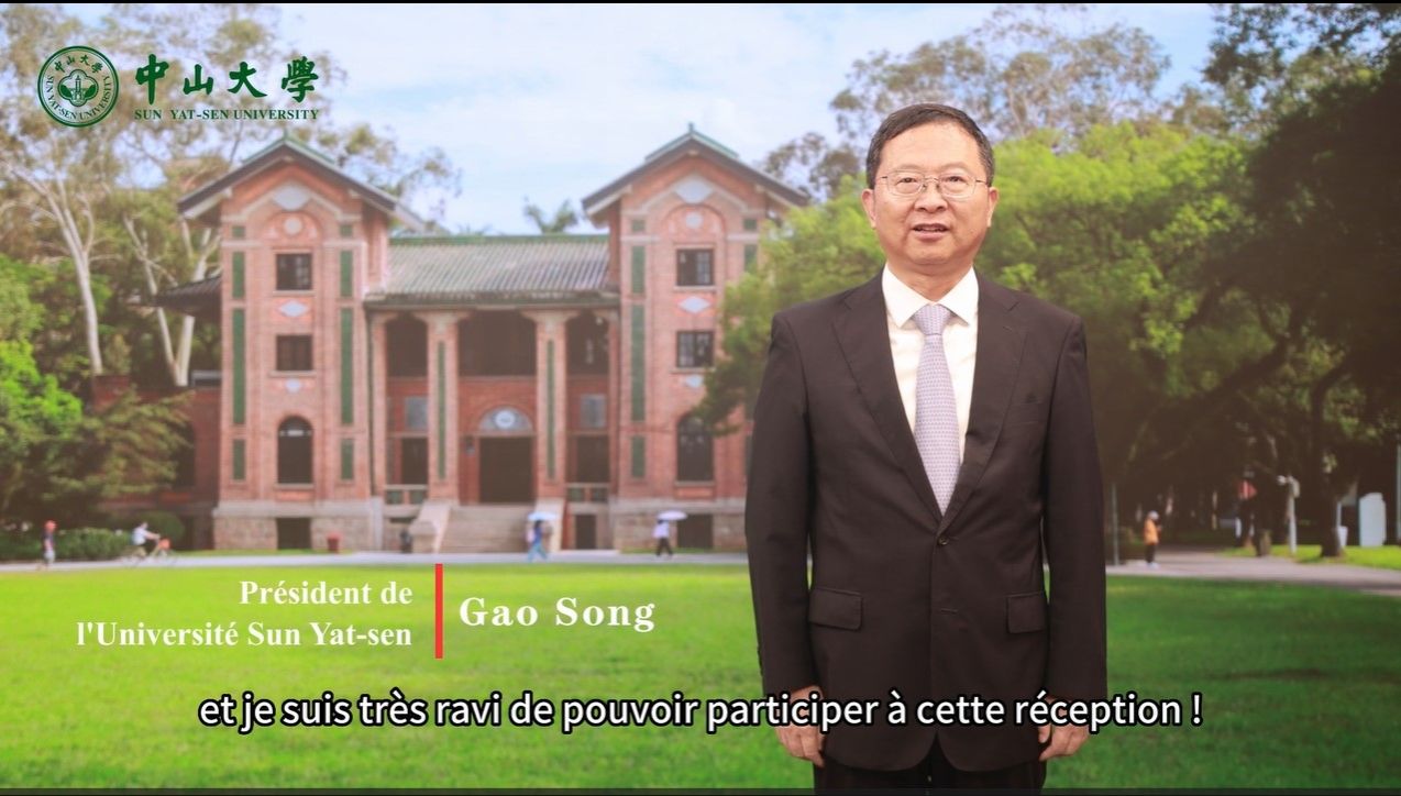 高松校長作為中國高校代表在招待會上視頻致辭,他表示,回望近一百年的校史,中山大學(xué)參與并見證了中法文明的交流互鑒。20世紀初,留法勤工儉學(xué)在全國各地興起。其中,有不少留法歸國學(xué)人曾在中山大學(xué)任教,他們?yōu)橹蟹▋蓢奈幕逃涣?,搭建了重要的橋梁。中山大學(xué)地處粵港澳大灣區(qū)辦學(xué),毗鄰港澳,進入21世紀以來,已與法國30多所高校建立了校際交流關(guān)系。我校與法國民用核能工程師教學(xué)聯(lián)盟合作共建的“中山大學(xué)中法核工程與技術(shù)學(xué)院”,榮獲“中法大學(xué)合作優(yōu)秀項目”獎項。2024年中法即將喜迎建交60周年,中山大學(xué)也將迎來百年校慶,歡迎法國的老師同學(xué)和各界友人前來中山大學(xué)開展交流合作。