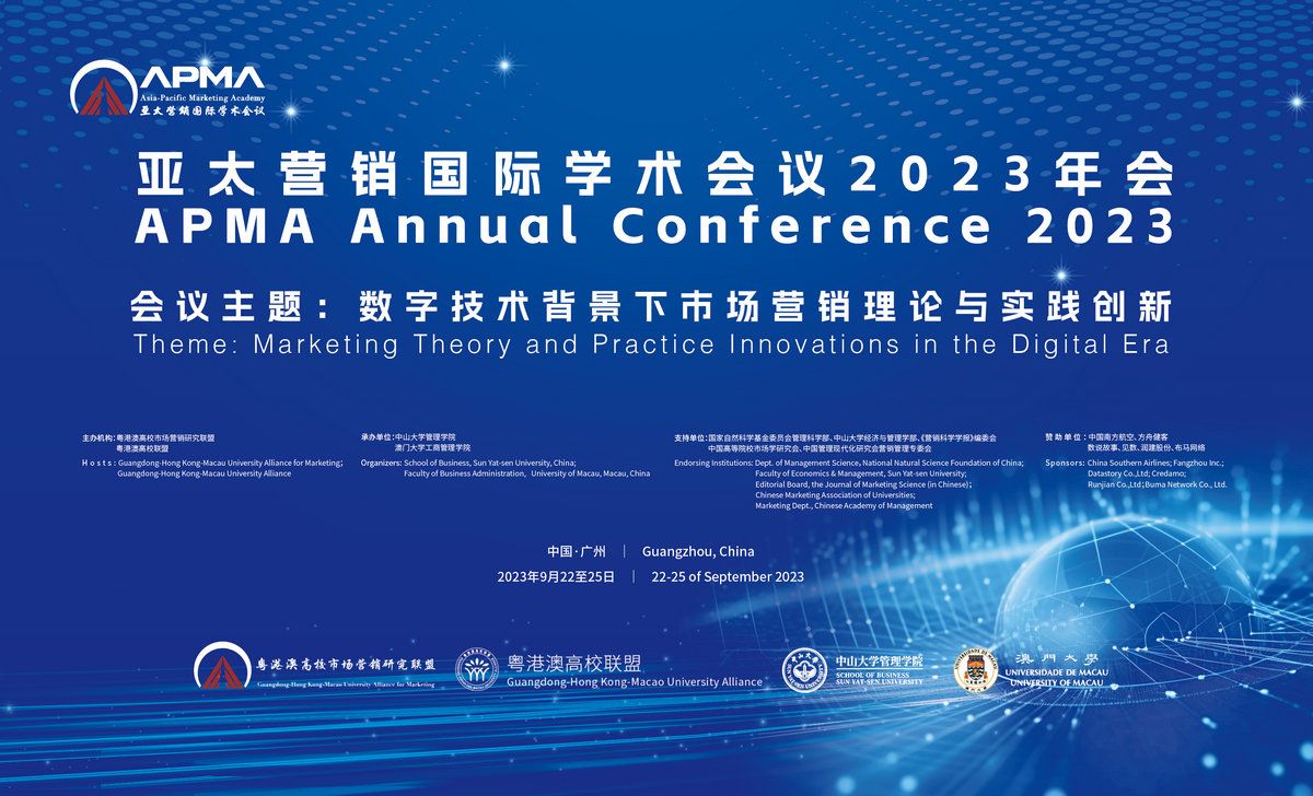 亞太營銷國際學術會議(以下簡稱“亞太營銷會議”),英文名稱Asia-Pacific Marketing Academy Conference(簡稱APMA),由粵港澳高校市場營銷研究聯盟(以下簡稱聯盟)提議創辦。該聯盟由中山大學市場營銷學科牽頭,聯合粵港澳地區高等院校學科同行,依據國家《粵港澳大灣區發展規劃綱要》指導框架提出創盟計劃申請。經粵港澳高校聯盟審核批準并在教育行政主管部門備案,于2023年正式成立。創盟院校包括中山大學、華南理工大學、深圳大學、香港大學、香港中文大學、香港城市大學、香港浸會大學、澳門大學、澳門科技大學。聯盟秘書處設于中山大學管理學院。在第一屆聯盟理事會成立會議上,中山大學王海忠教授被選舉為理事長,澳門大學副校長許敬文教授被選舉為聯席理事長。