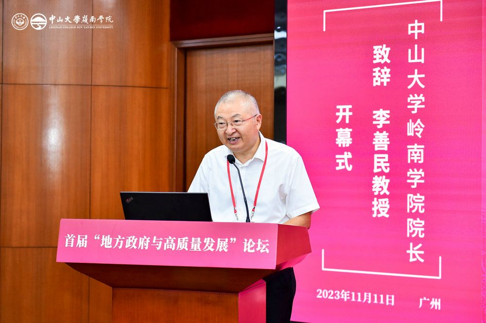 中大新聞網訊(通訊員李粵麟、廖藝凡、黃秋詩)11月11日,由中山大學嶺南學院、中觀經濟學研究院、中觀經濟學與區域產業協同發展重點實驗室、國家治理研究院主辦,中國經濟學年會制度與政治經濟學專業委員會、中華外國經濟學說研究會發展經濟學研究分會協辦的首屆“地方政府與高質量發展”論壇在中山大學嶺南堂開幕。中山大學副校長蘭平教授,中山大學經濟與管理學部主任、嶺南學院院長、中觀經濟學與區域產業協同發展重點實驗室主任李善民教授出席開幕式并致辭。開幕式由嶺南學院黨委書記黃毅主持。