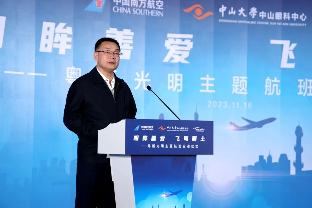中大新聞網(wǎng)訊(通訊員邰夢云、唐艷麗)11月16日,由中山大學(xué)中山眼科中心和南方航空集團(tuán)主辦的“明眸善愛 飛粵疆土”——粵新光明主題航班啟動(dòng)儀式在廣州白云機(jī)場T2航站樓舉行。廣東省衛(wèi)生健康委、新疆維吾爾自治區(qū)衛(wèi)生健康委、廣東省對口支援新疆工作前方指揮部、中山大學(xué)、南方航空集團(tuán)及中山大學(xué)中山眼科中心的相關(guān)領(lǐng)導(dǎo)和嘉賓參加啟動(dòng)儀式。