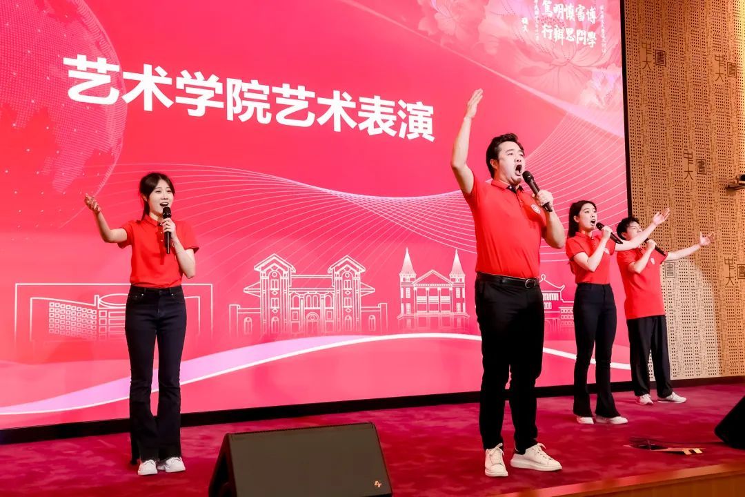 最后,參會(huì)人員共同欣賞了由藝術(shù)學(xué)院張海慶副教授等師生帶來的小合唱,校友之歌《山高水長(zhǎng)》。千百個(gè)夢(mèng)里,總把校園當(dāng)家園。無論身處何時(shí)何地,只要奏響這支之歌,校友們的心都會(huì)因?yàn)槟感6o密聯(lián)結(jié)在一起。