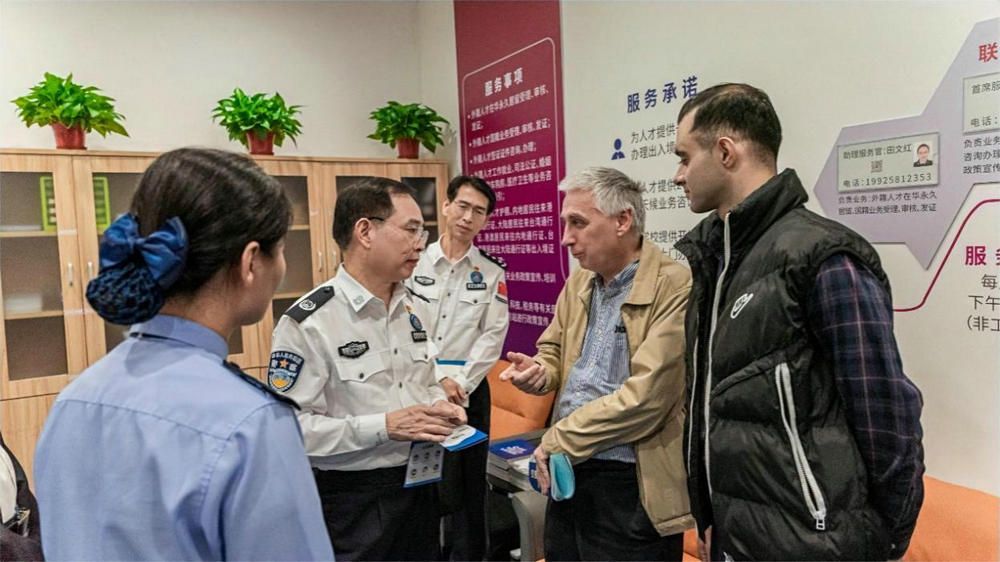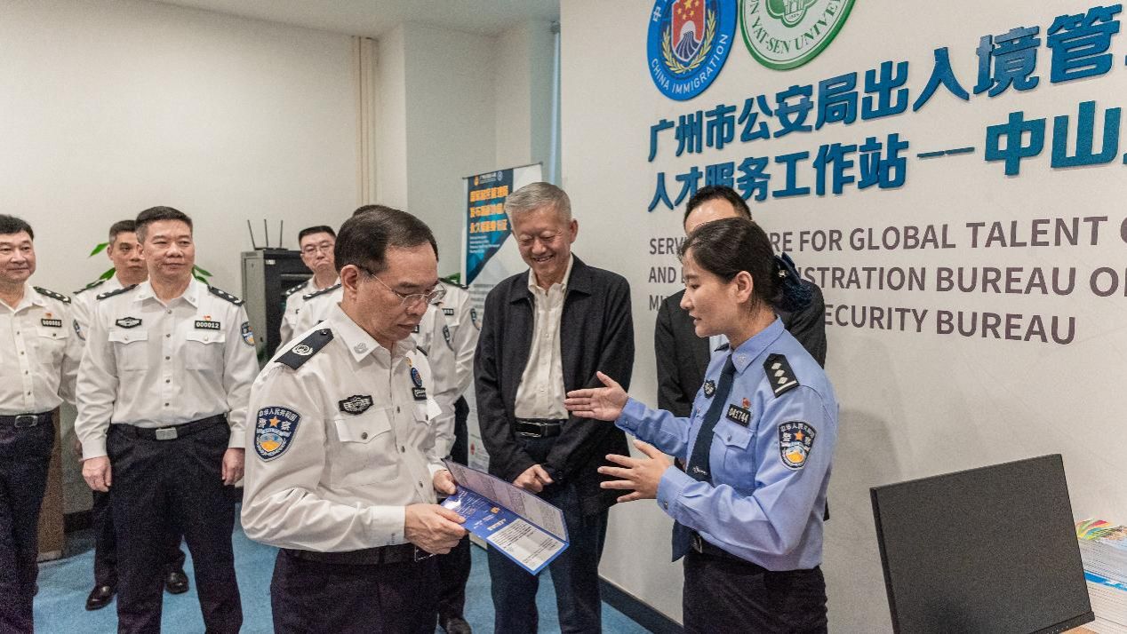 許甘露副部長一行參觀了我校大學服務中心,對廣州市公安局出入境管理局駐中山大學人才服務工作站進行了重點考察,了解開展人才服務情況,并與我校外籍專家代表梅謙立教授現場交流,調研外籍人才在出入境等方面的需求。