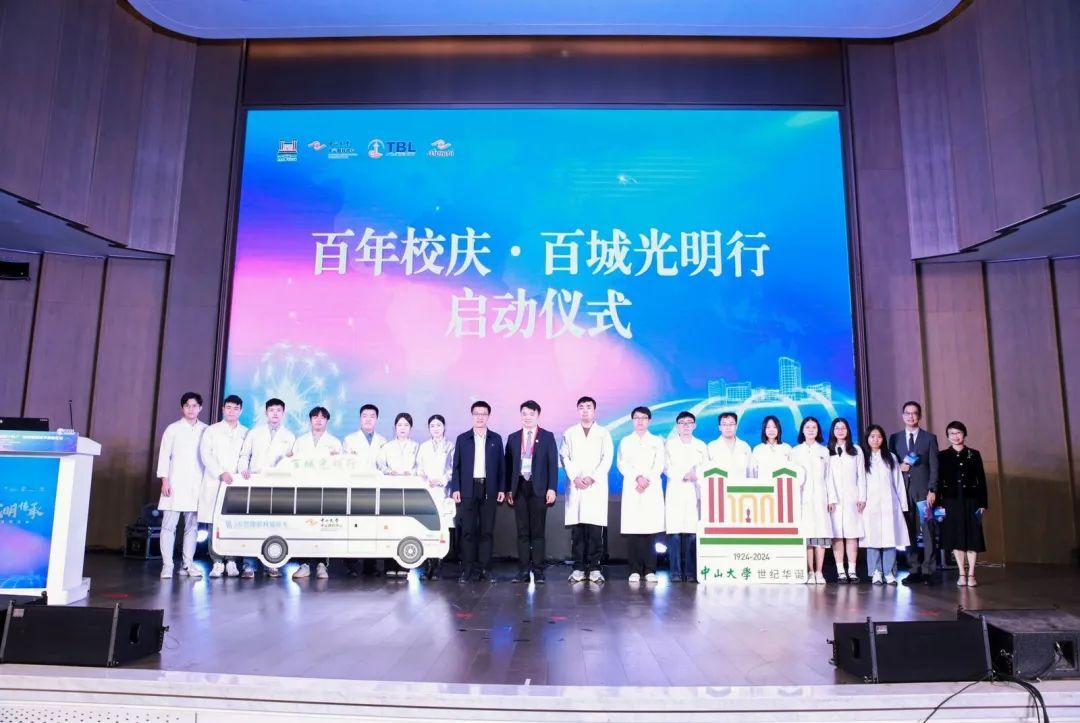 校友和社會愛心資源一直都是中山眼科人追光路上的閃亮星光。為獻(xiàn)禮中山大學(xué)百年校慶,中山眼科中心聯(lián)合杰出校友、兄弟單位以及社會愛心力量等發(fā)起“百年校慶·百城光明行”活動。2024百年校慶年,中山眼科中心5G智能眼科巡診車醫(yī)療隊將到全國100個城市開展“光明行”公益活動,進(jìn)行科普活動、義診篩查、學(xué)科共建等,希望有更多愛心力量的加入,同時也呼吁校友們一起加入百年校慶·百城光明行活動隊列。