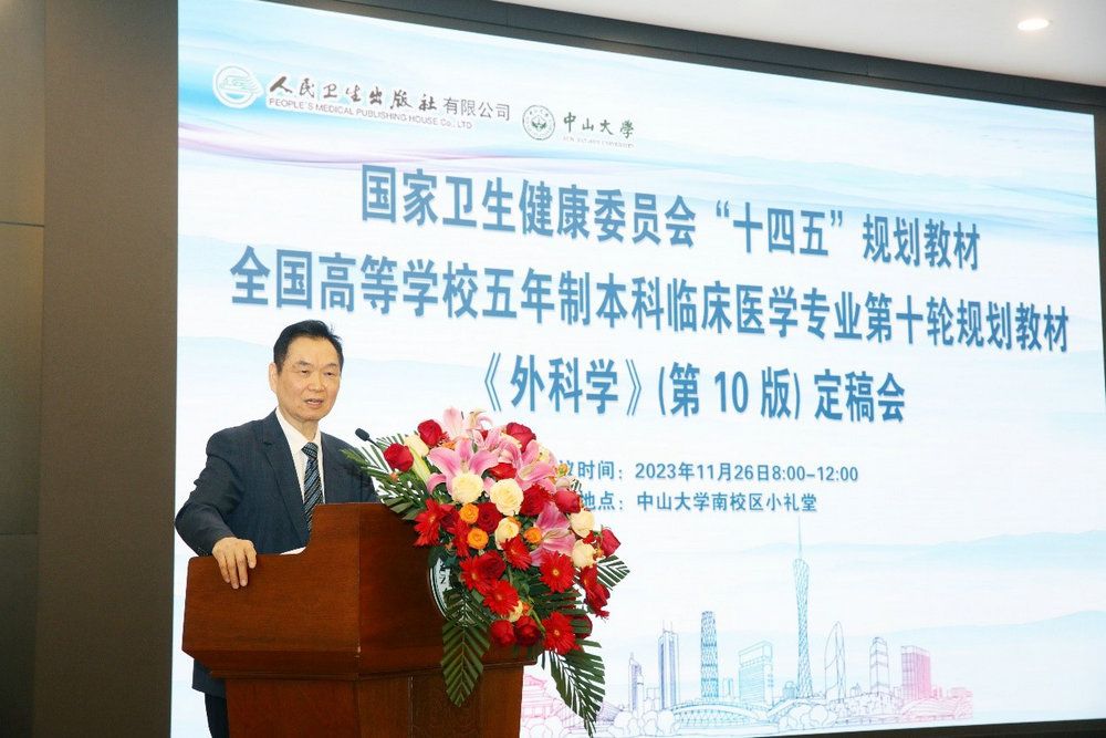 中大新聞網訊(通訊員張婷婷、戴希安、樂虞瑩)11月26日,國家衛健委“十四五”規劃五年制本科教材《外科學》(第10版)定稿會在中山大學廣州校區南校園懷士堂順利召開。來自全國四十余所醫學高等院校的百余位國內頂級醫學家和教育家,廣州市人民政府、人民衛生出版社相關領導出席了本次會議。
