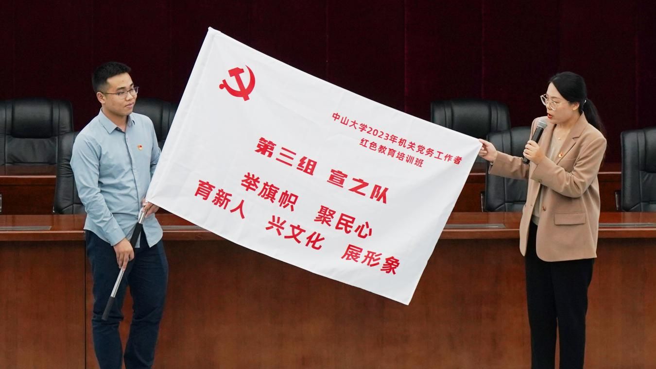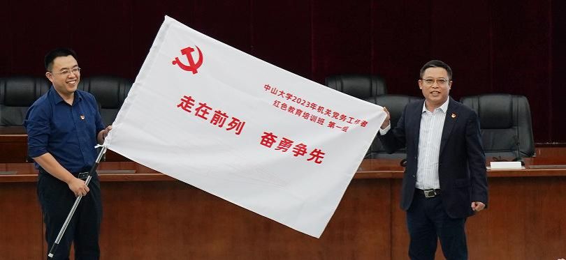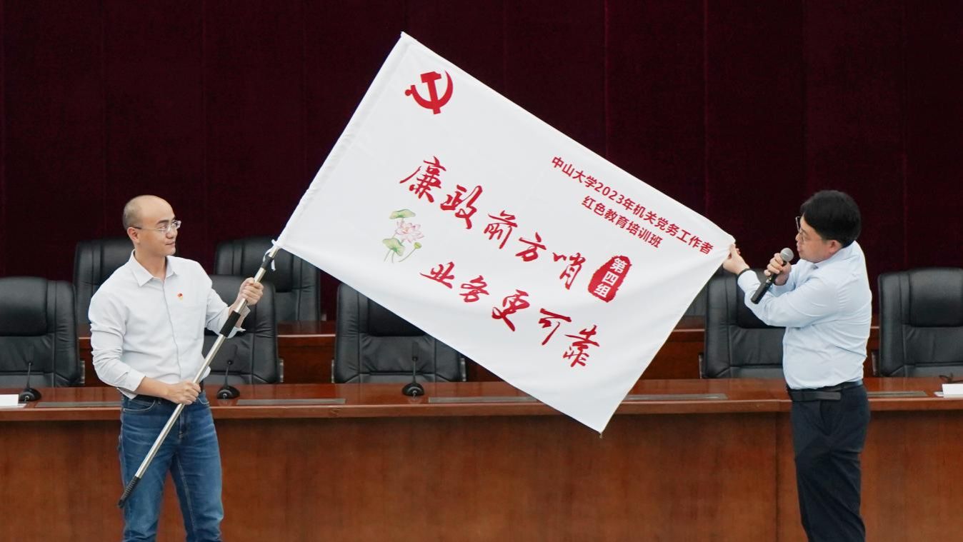 陳建存代表嘉應(yīng)學院作開班致辭。他對中山大學機關(guān)的學員們表示熱烈的歡迎,并介紹了近年來梅州市和嘉應(yīng)學院的發(fā)展情況,期待以此次培訓為契機,進一步加強嘉應(yīng)學院與中山大學的溝通交流。楊建林主任作開班動員講話。他從人民性、組織性、紀律性三個方面對學員們提出要求,希望學員們珍惜培訓機會,認真學習,做到學思踐悟、知行合一。培訓班班長曲翔代表班級作表態(tài)發(fā)言。他表示全體學員將以端正的學習態(tài)度、嚴明的紀律要求全身心投入培訓,真正做到學有所獲,學有所思,學有所悟,并代表班級接受陳建存的授旗。