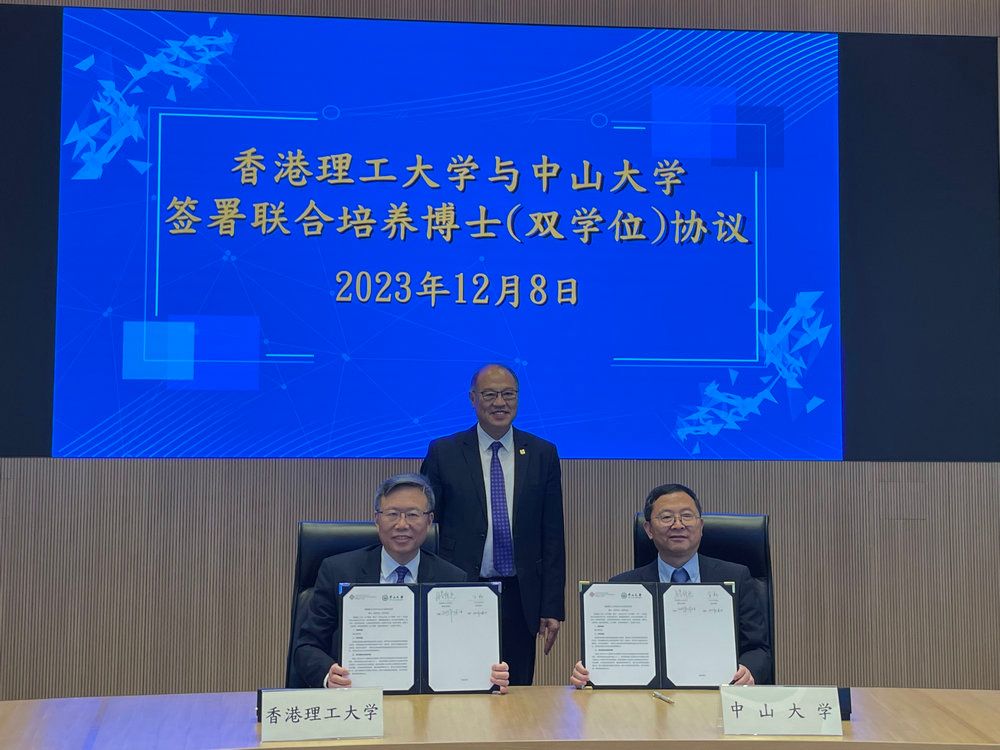 中山大學與香港理工大學于1995年正式建立校級合作關系,在學術交流、學生交換、聯合培養、科學研究等方面開展了密切合作。2016年,中山大學牽頭組建粵港澳高校聯盟,香港理工大學為首批入盟單位及聯盟理事會成員。在聯盟框架下,兩校在超算、空間科學與技術、海洋科技創新、旅游研究、交叉科學計算與理論、物聯網、智慧校園、康復醫學、護理、區塊鏈、海洋裝備與工程力學等領域組建了多個專業聯盟。
