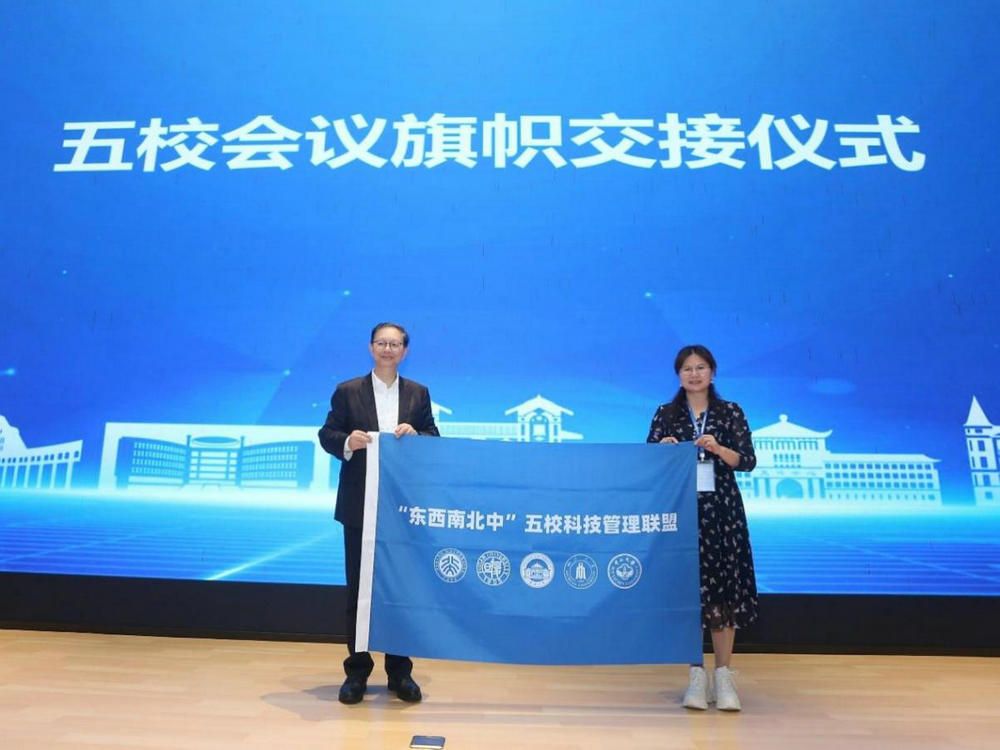 最后,大會舉行了五校會議旗幟的交接儀式,中山大學副校長蘭平代表中山大學將接力棒交給了北京大學科學研究部副部長張存群。旗幟的交接是承辦單位的更替,也是科管開拓創新精神的永續。