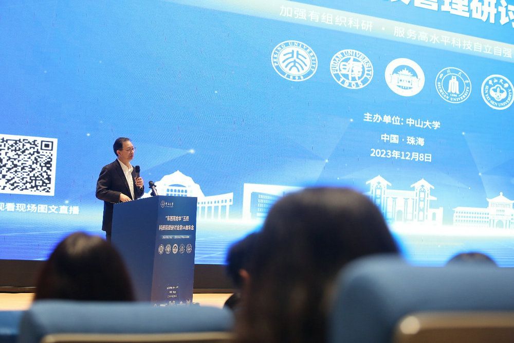 主題研討環節由中山大學科學研究院綜合處副處長(主持工作)海珊主持。北京大學科學研究部副部長張存群、復旦大學科學技術研究院副院長徐曉創、武漢大學科學技術發展研究院產學研合作處副處長張利平、四川大學科學技術發展研究院副院長武梅、中山大學科學研究院副院長李?希分別作主題報告,并介紹了各自學校圍繞“有組織科研”進行的探索和實踐。下午的專題研討環節分為四個分會場,與會代表們結合各自學校科技管理工作的實踐與經驗,圍繞基礎研究、科技成果轉化、科研平臺建設等議題展開了討論和交流。五校選拔推薦的青年科管人員匯聚在科技管理青年論壇,分享了工作經驗和思考。