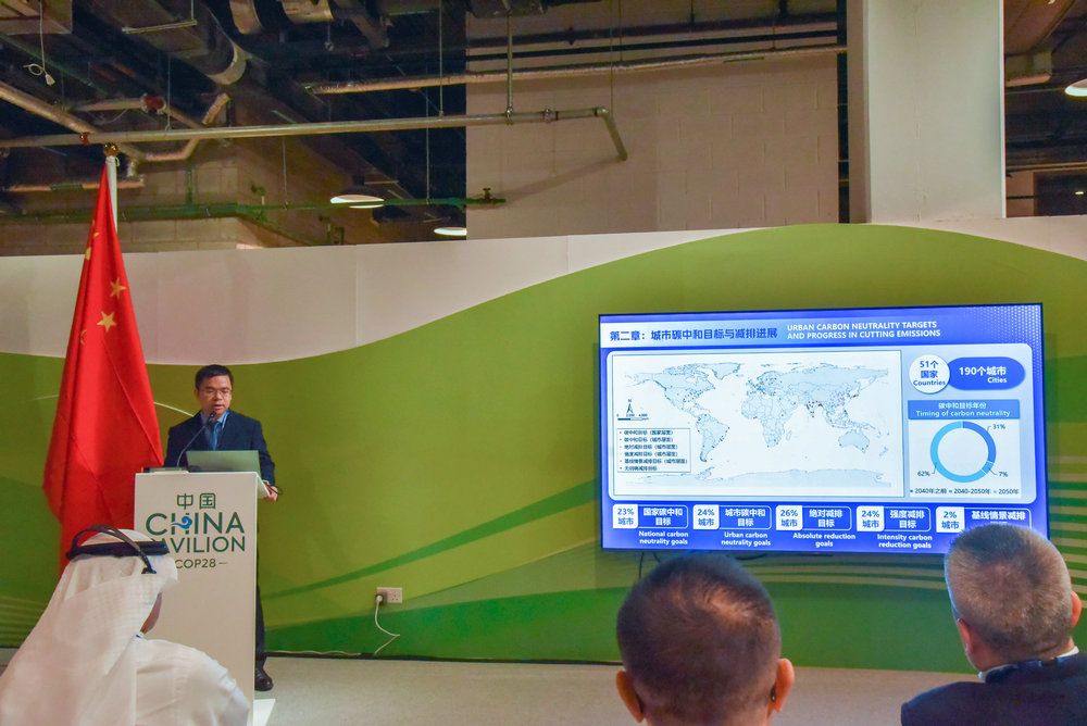 中山大學陳紹晴教授在迪拜現(xiàn)場發(fā)布《全球城市碳中和進展2023》報告