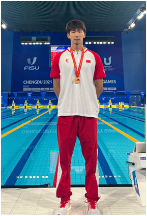趙鑫辰同學(xué)在成都大運(yùn)會男女混合4x100米自由泳接力比賽中獲得金牌