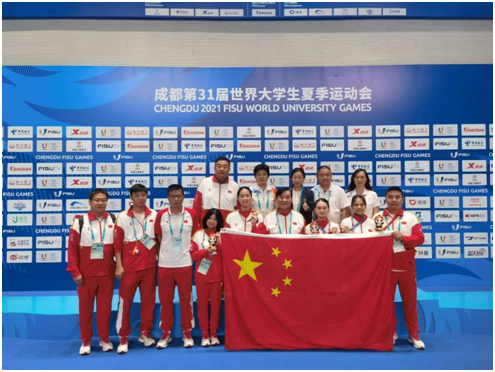 我校作為中國大學(xué)生體育協(xié)會擊劍分會掛靠單位,承擔(dān)本屆世界大學(xué)生運(yùn)動會中國大學(xué)生擊劍項(xiàng)目參賽隊(duì)員的選拔組隊(duì)任務(wù)。經(jīng)過科學(xué)組隊(duì),積極備賽,參賽隊(duì)員發(fā)揮拼搏精神,最終在成都大運(yùn)會上取得了3金1銀2銅的優(yōu)異成績,圓滿完成了黨和國家交給的競賽任務(wù)。