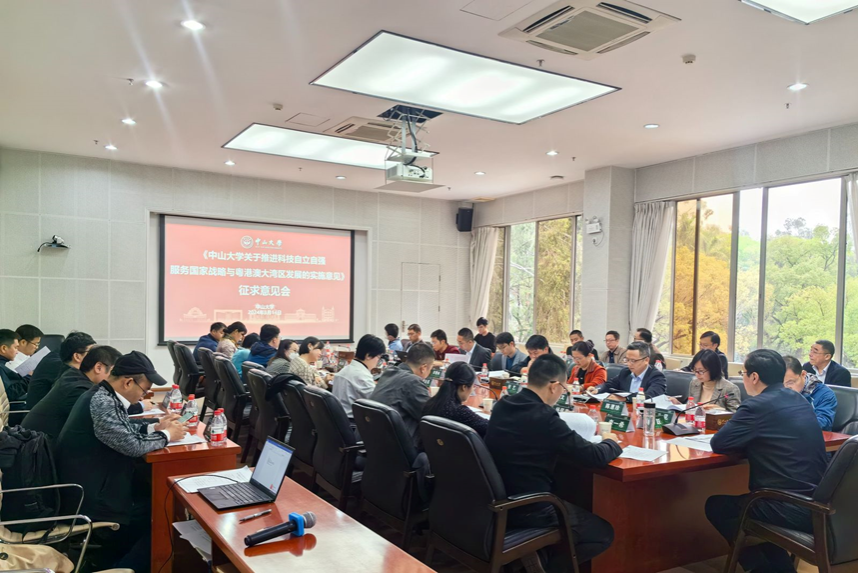 為進(jìn)一步貫徹落實(shí)2023年學(xué)校秋季工作會(huì)議精神,推進(jìn)科技自立自強(qiáng),實(shí)現(xiàn)學(xué)校高質(zhì)量?jī)?nèi)涵式發(fā)展,3月14日下午,鄭躍副校長在南校園組織召開《中山大學(xué)關(guān)于推進(jìn)科技自立自強(qiáng) 服務(wù)國家戰(zhàn)略與粵港澳大灣區(qū)發(fā)展的實(shí)施意見》(以下簡(jiǎn)稱“實(shí)施意見”)征求意見會(huì)。科學(xué)研究院、先進(jìn)技術(shù)研究院、人文社會(huì)科學(xué)處、研究生院等10個(gè)相關(guān)職能部門以及部分院系、附屬醫(yī)院、科研機(jī)構(gòu)等23個(gè)單位近40人參加會(huì)議。